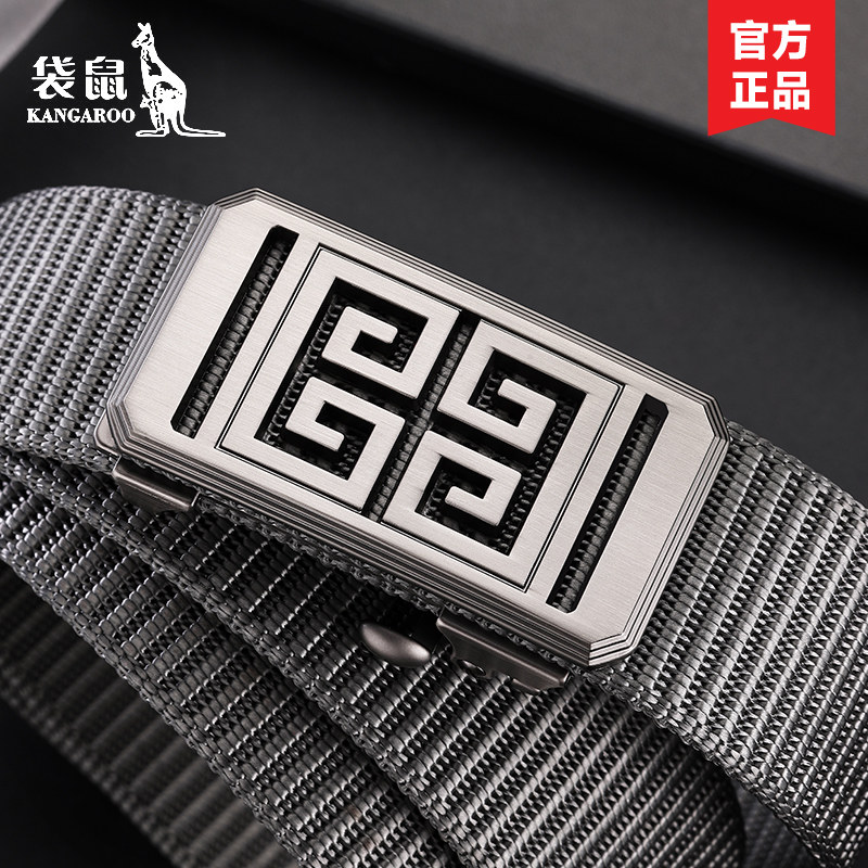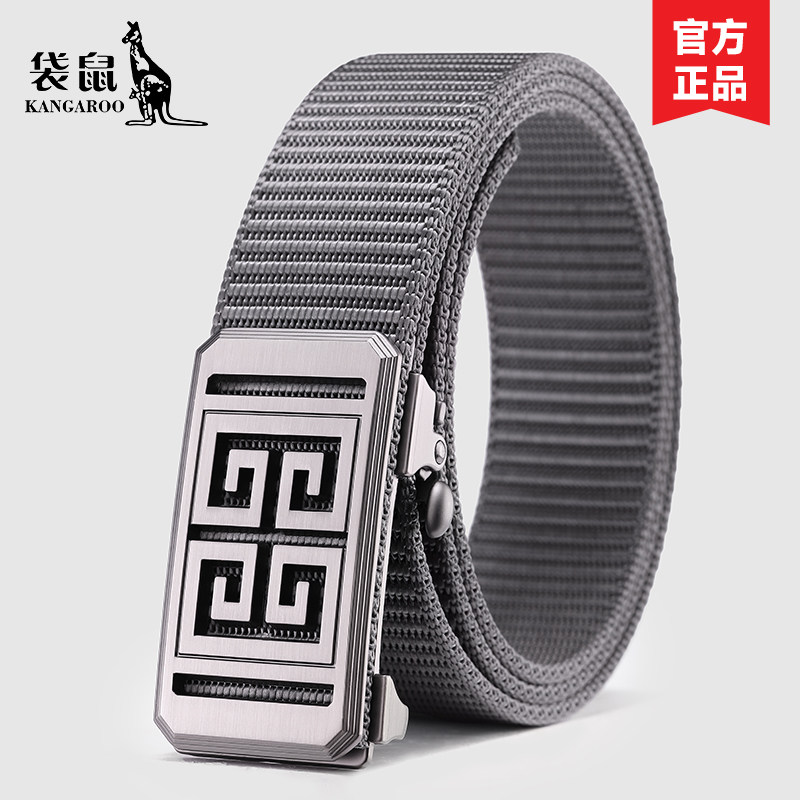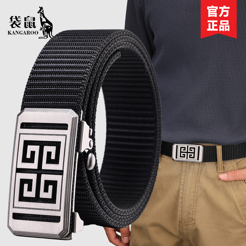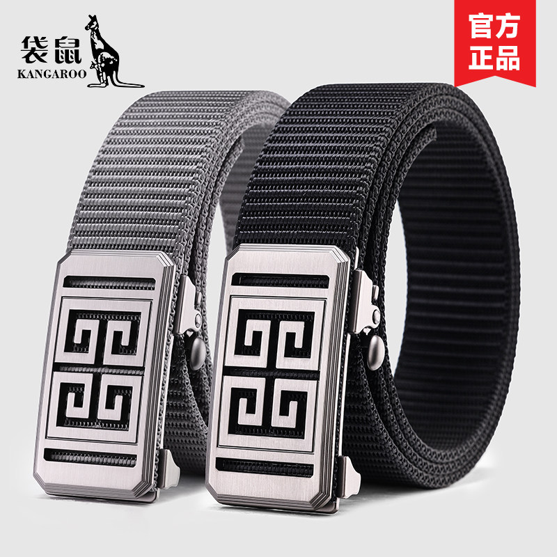 袋鼠男士腰带潮年轻人帆布军训皮带自动扣编织尼龙休闲学生裤腰带