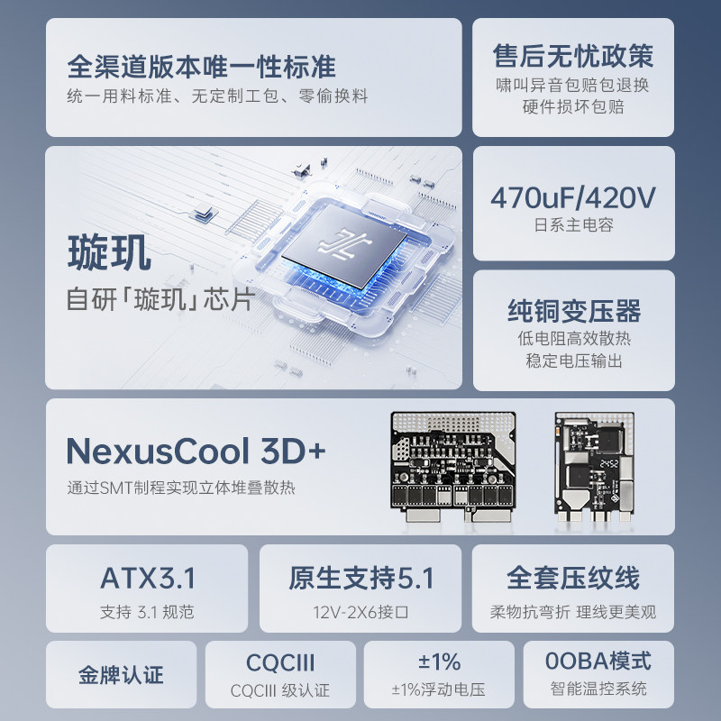 金河田Nexus Gold 750W全模组电源电脑台式机 金牌双认证/ATX3.1