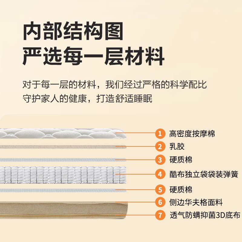 「寝物原始」整床无胶水独立袋装双层弹簧羊毛手工拉扣定制床垫