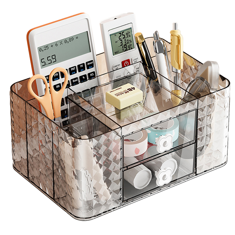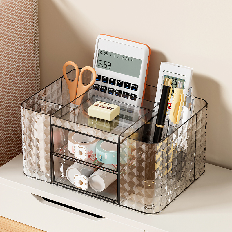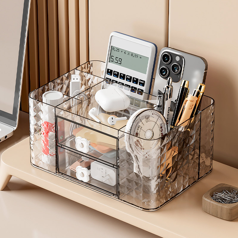 笔筒收纳盒轻奢高级感学生桌面多功能大容量办公室好物儿童男孩女孩书桌一体可爱文具置物架笔桶化妆品口红