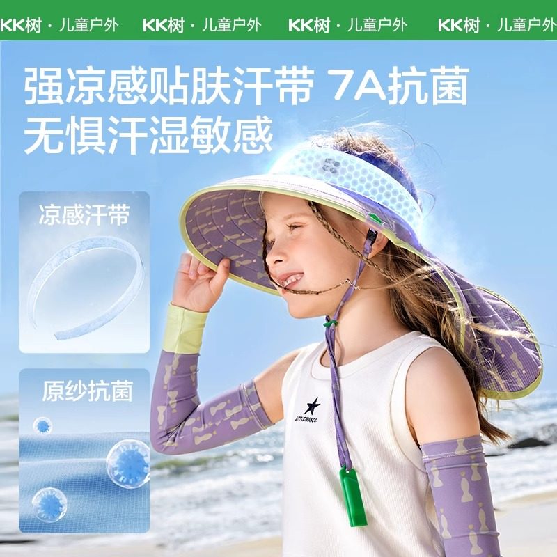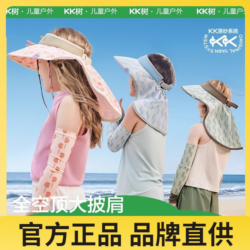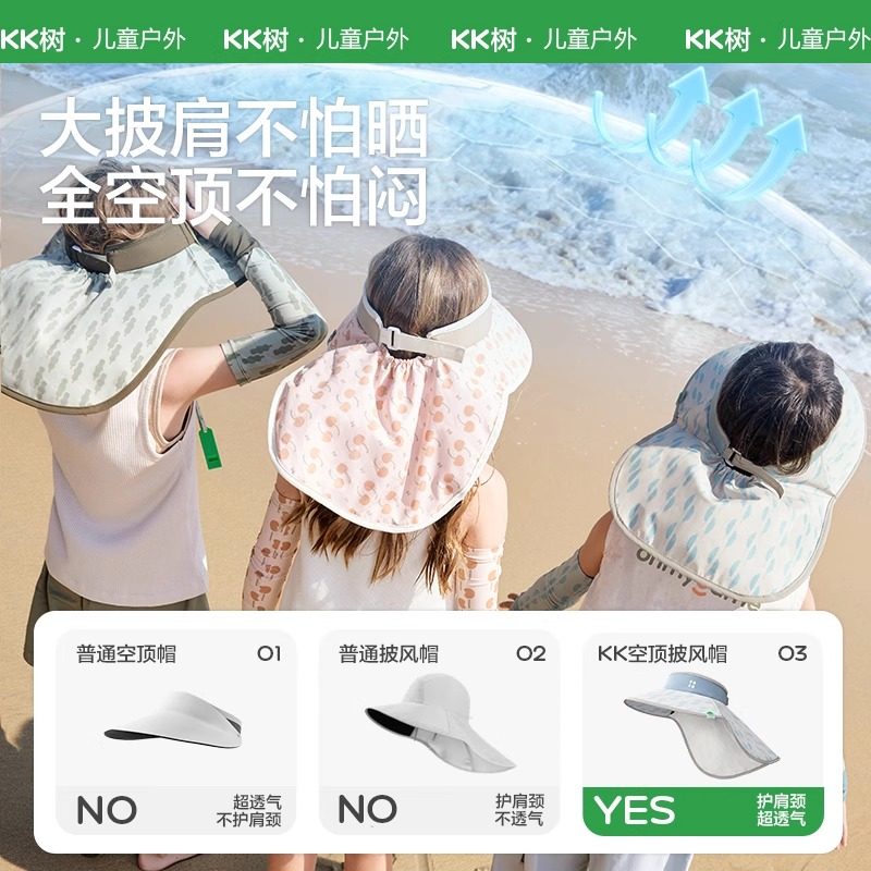 KK树儿童防晒帽原纱男童女孩遮阳帽宝宝太阳帽夏防紫外线空顶大檐