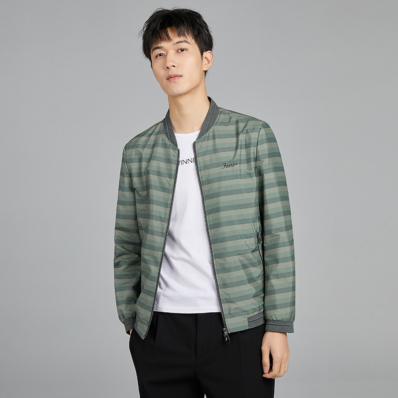 外贸大牌正品撤标尾货清仓男装上衣秋2023款条纹时尚休闲夹克外套