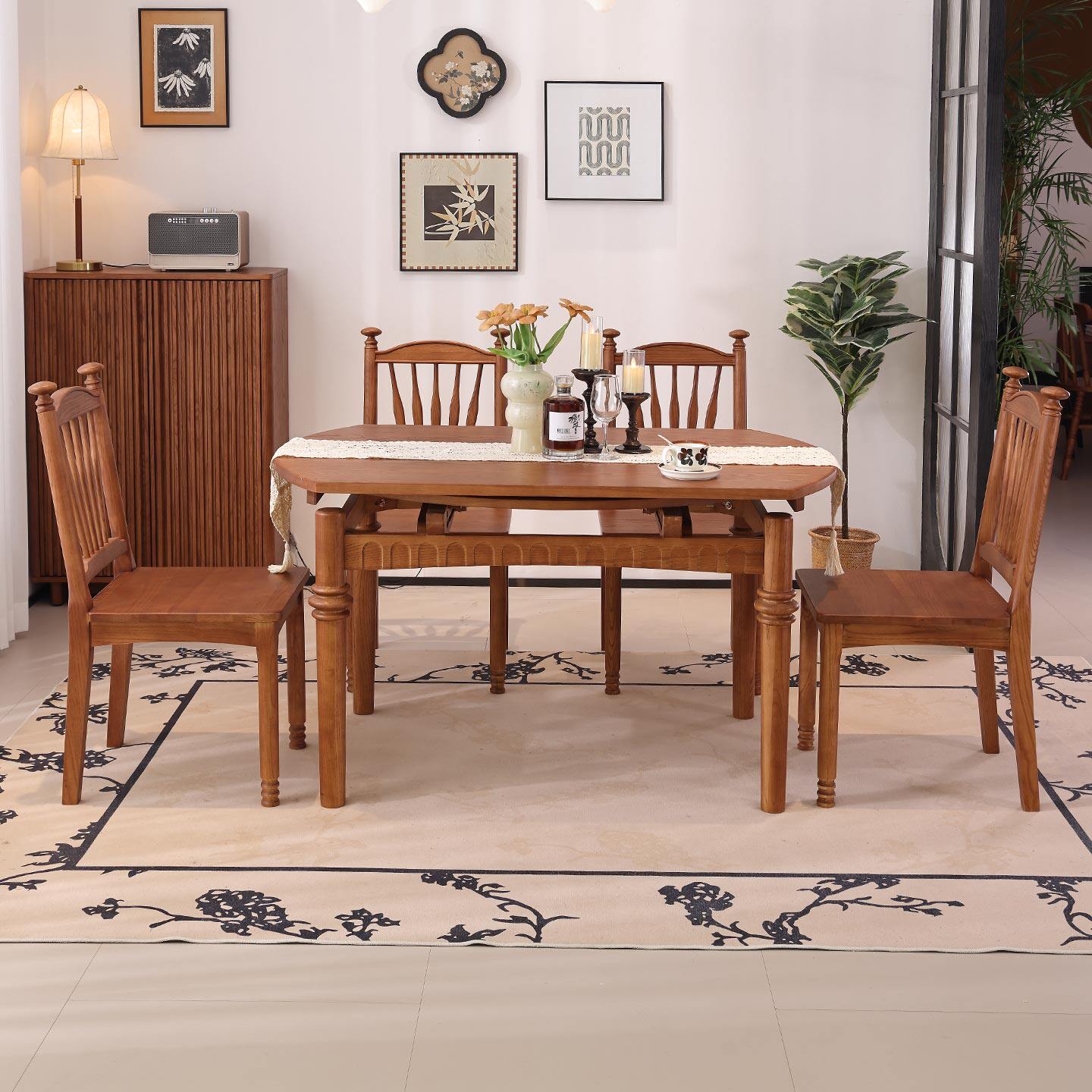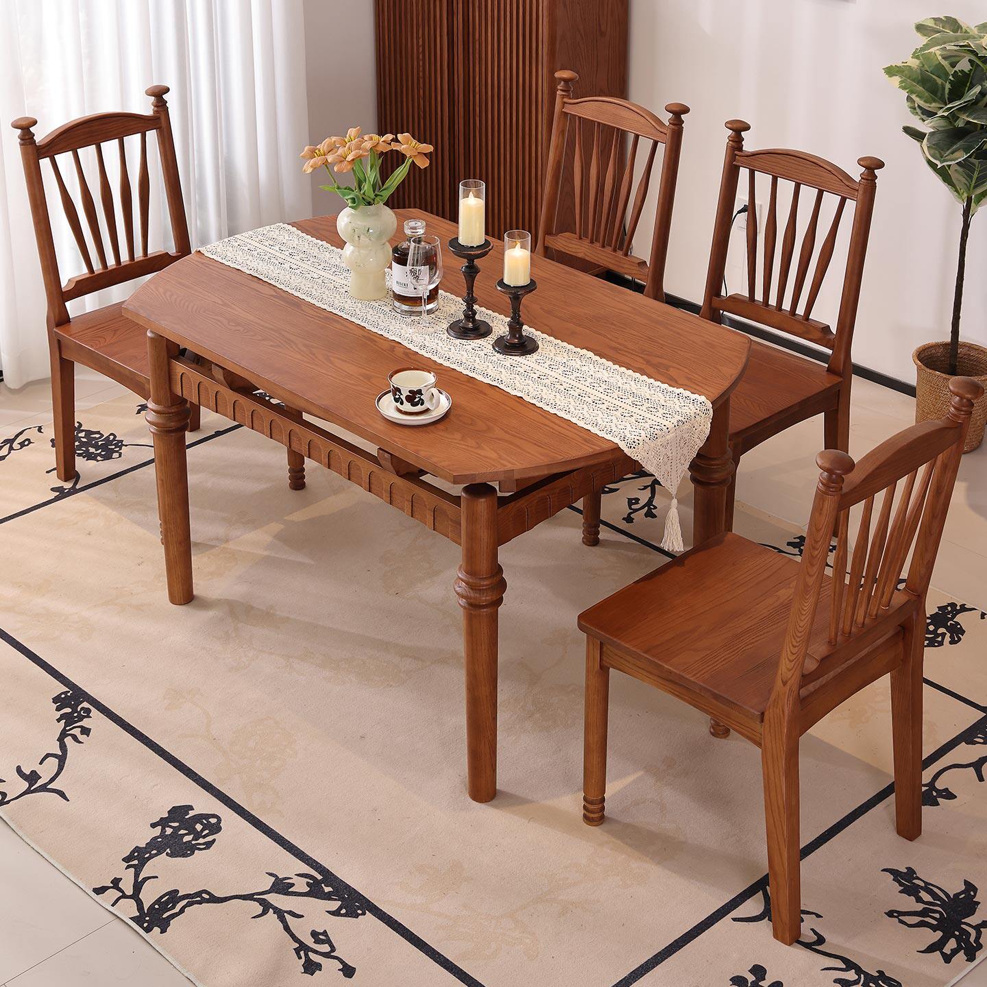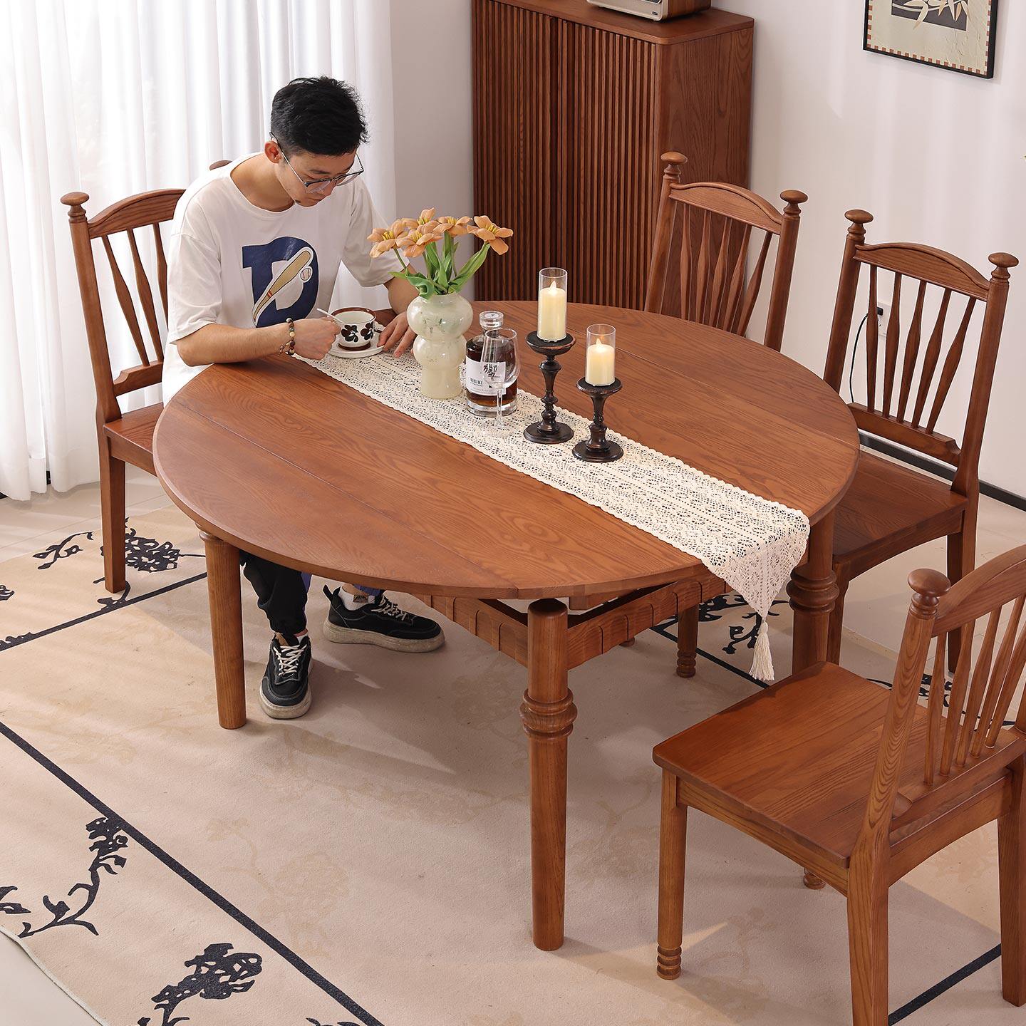 中古风实木伸缩餐桌2025新款法式美式家用小户型复古伸缩可变圆桌