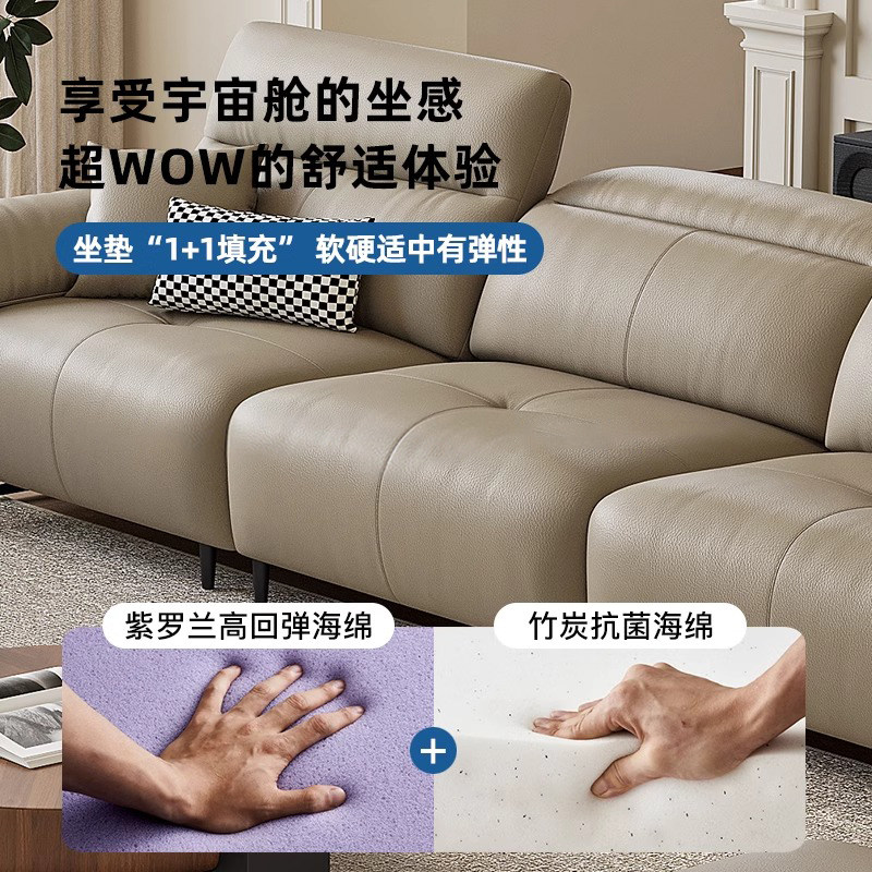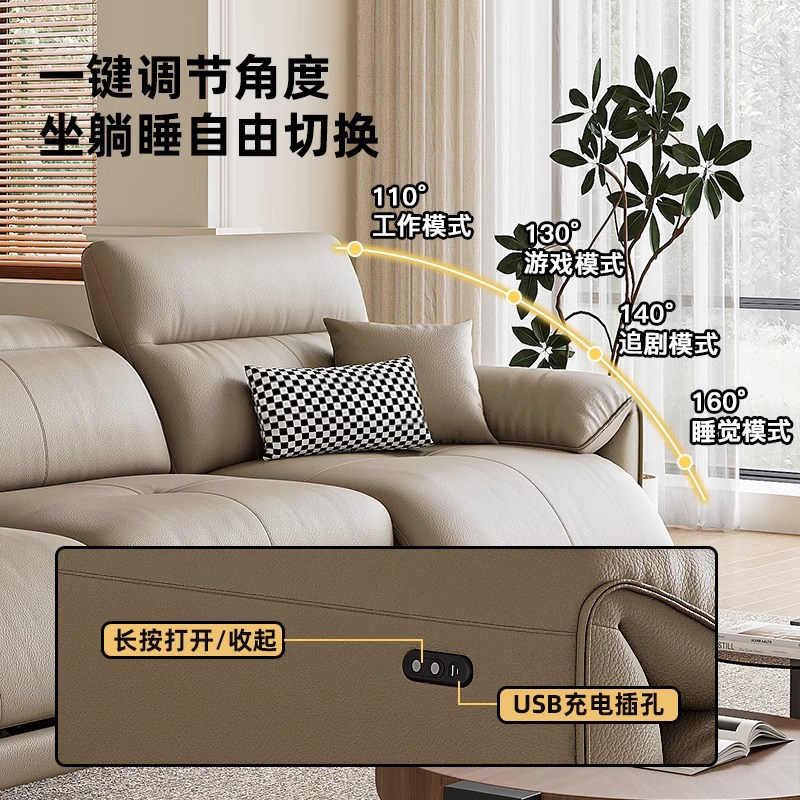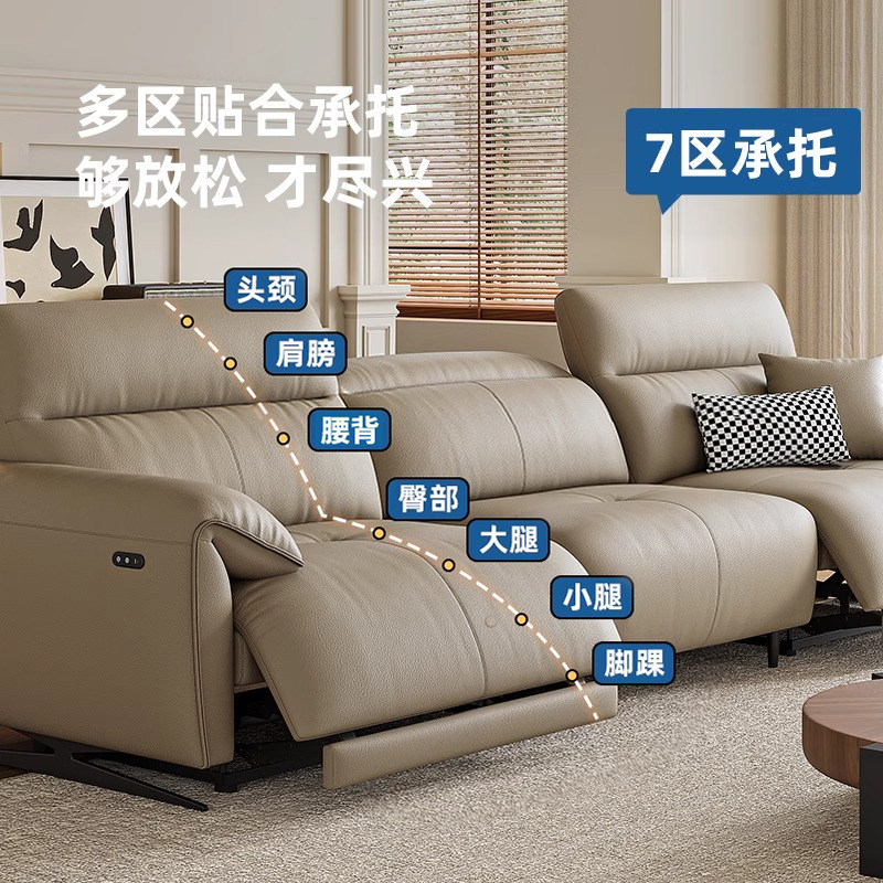 XH天禧派云朵沙发双电动功能真皮沙发零靠墙头层牛皮意式简约7080