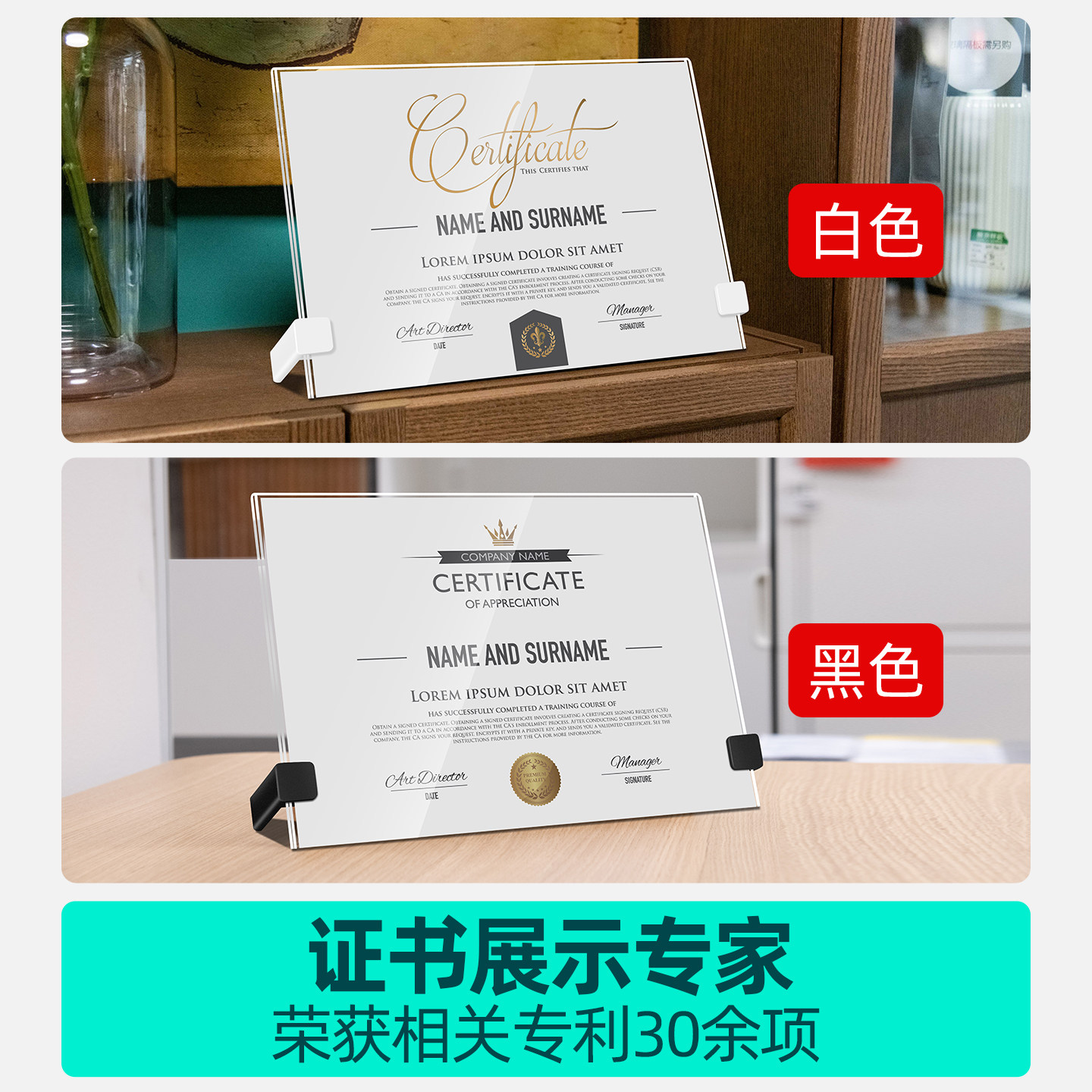 亚克力悬浮相框专利证书展示框教师简介奖状荣誉挂墙照片墙展示墙