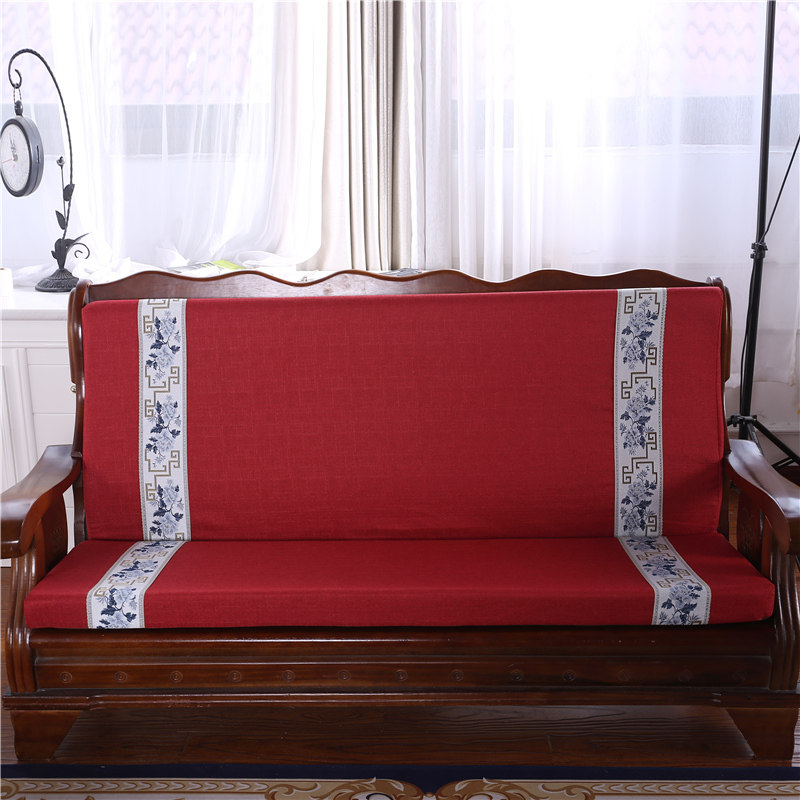 中式连体带靠背红实木沙发垫加厚海绵可拆洗老式木头三人座椅坐垫