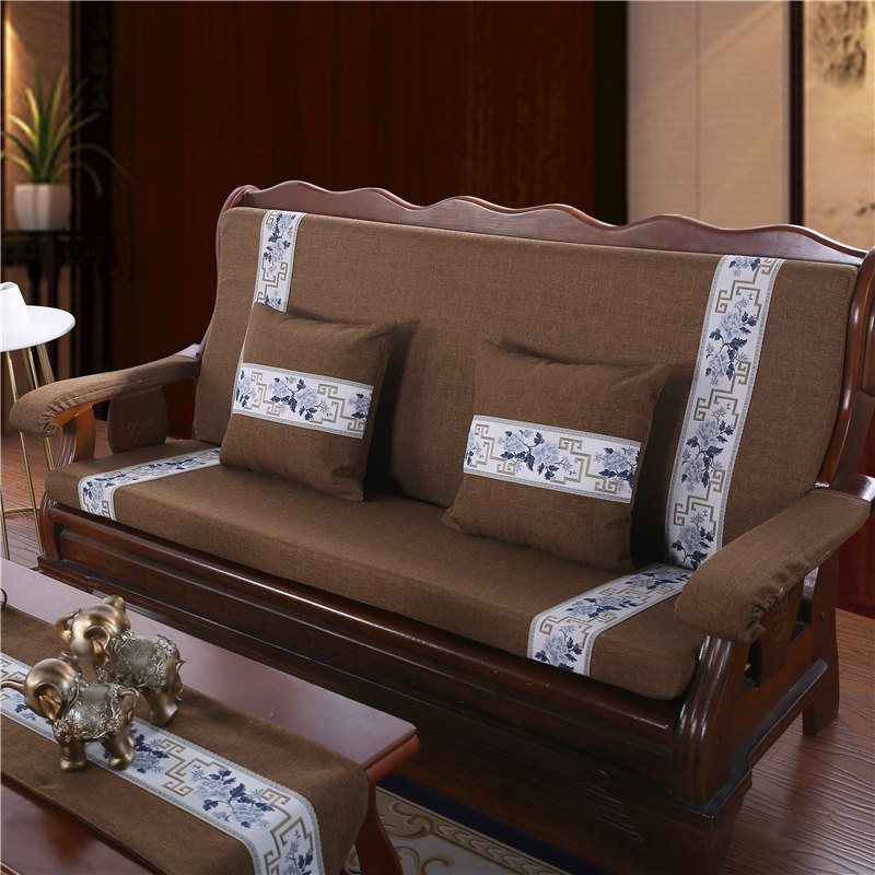 纯色亚麻防水实木沙发坐垫防滑四季红木椅加硬海绵沙发垫子可拆洗