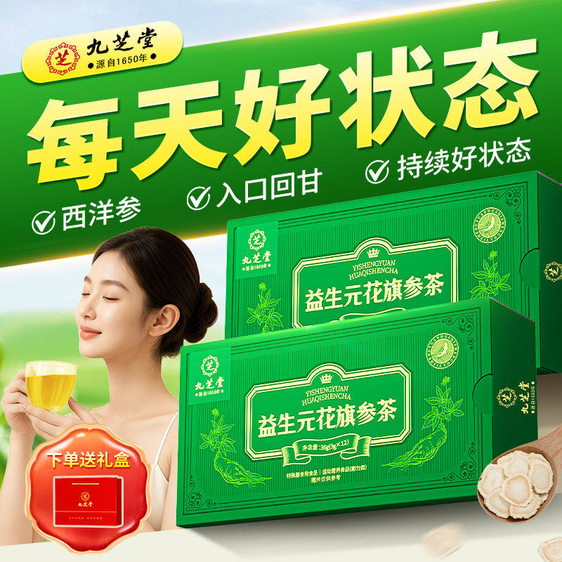九芝堂益生元花旗参茶西洋参高端滋补男抗疲劳提神人参皂苷增免疫
