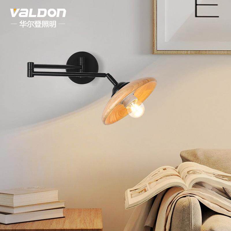 木纹摇臂壁灯卧室床头灯现代简约客厅书房折叠伸缩LED阅读墙壁灯