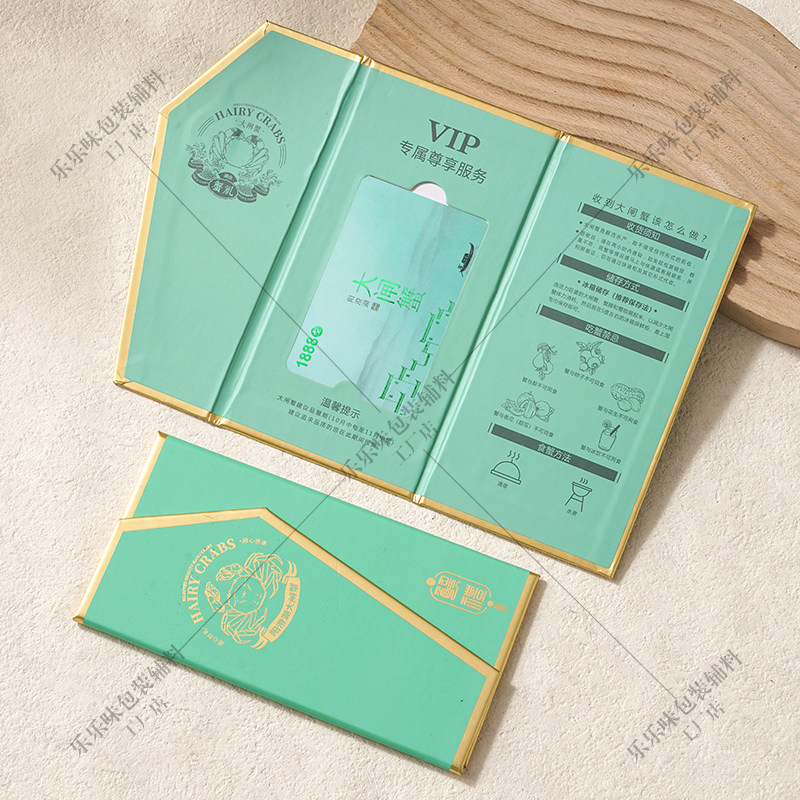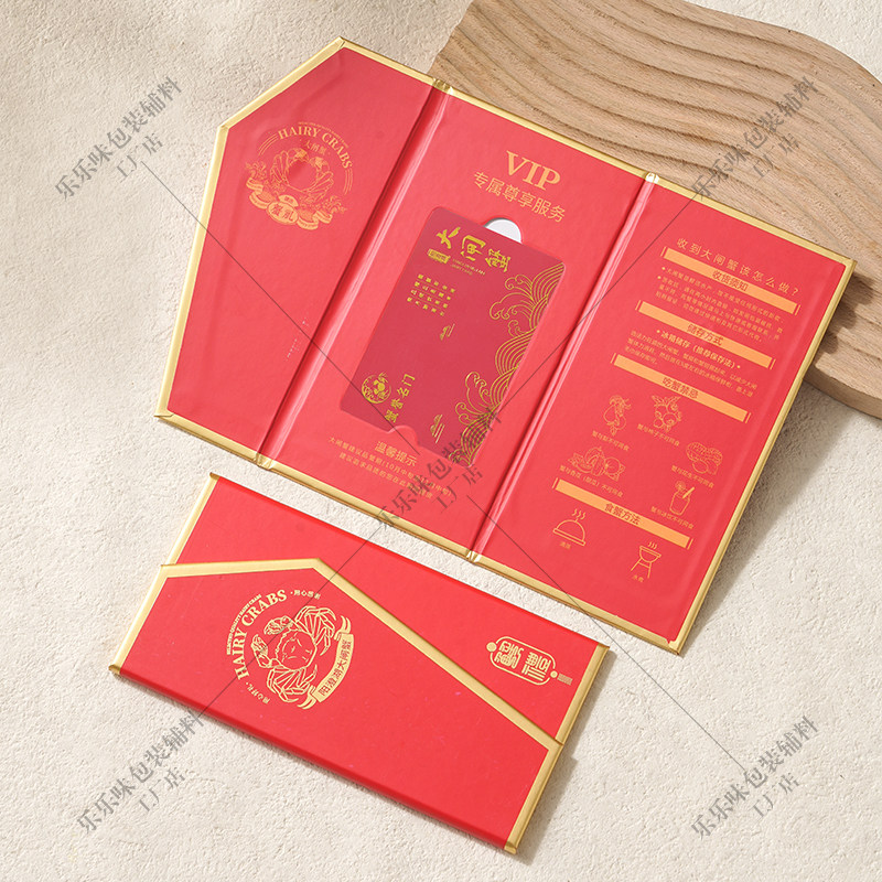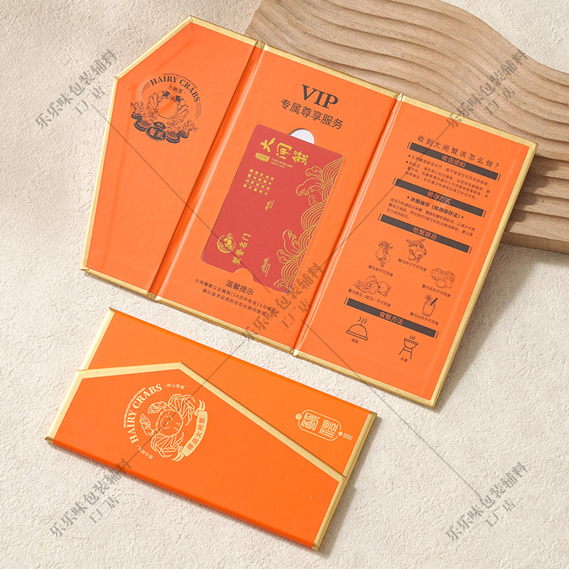 大闸蟹卡套三折页螃蟹卡封套商家提蟹卡券卡盒礼品提货卡现货通用