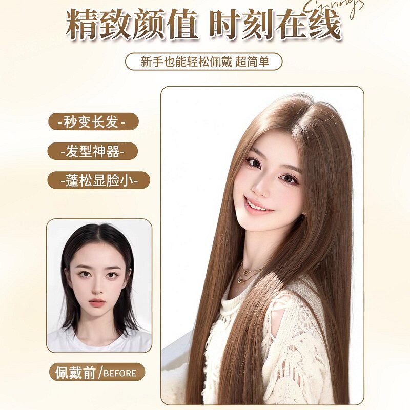 假发全头套女隐形无痕lolita气质中分长直发假发日常整顶假发发套