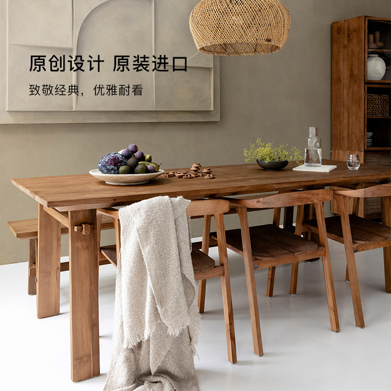 MountainLiving进口老柚木家具纯实木餐桌家庭家用长桌复古中古风
