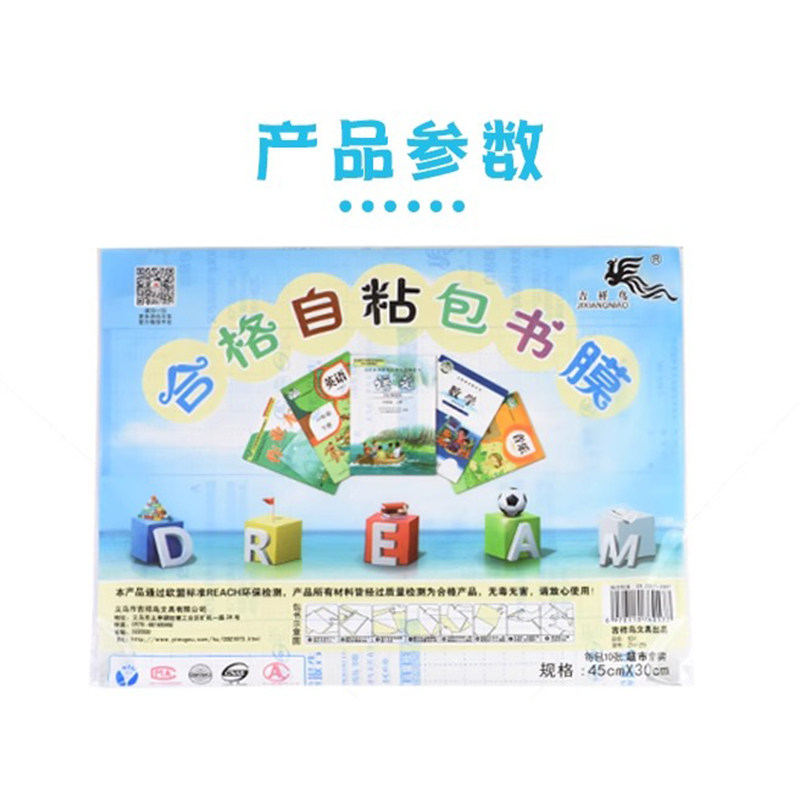 吉祥鸟自粘成型免裁剪钻石纹透明16KA4包书皮套装包书纸PP材质 软薄防水磨砂防滑保护书皮封面本子书膜文具