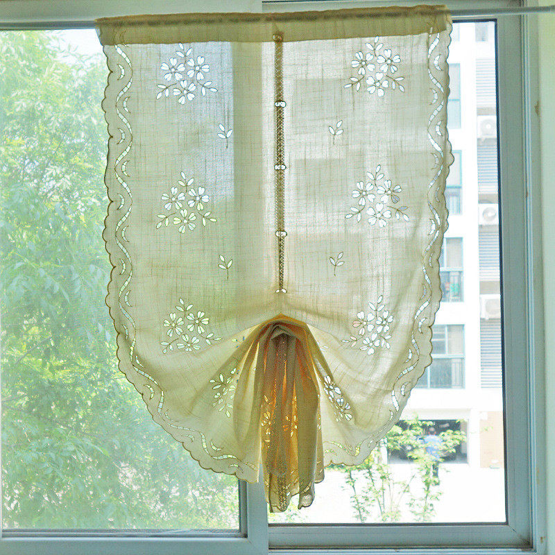 6b76新款飘窗卷帘成品窗帘免打孔遮光罗马帘田园魔术贴美式扇形提