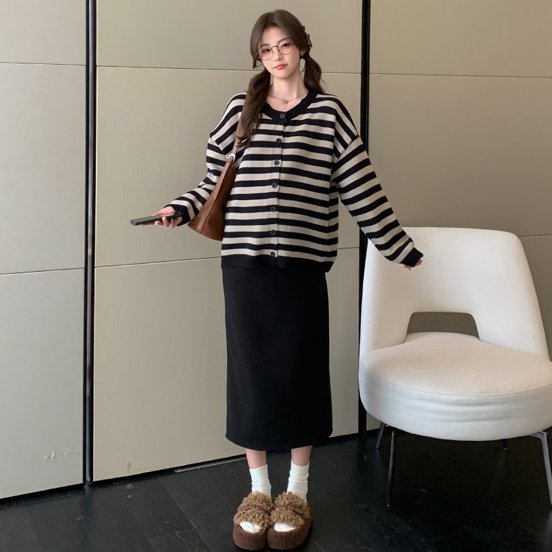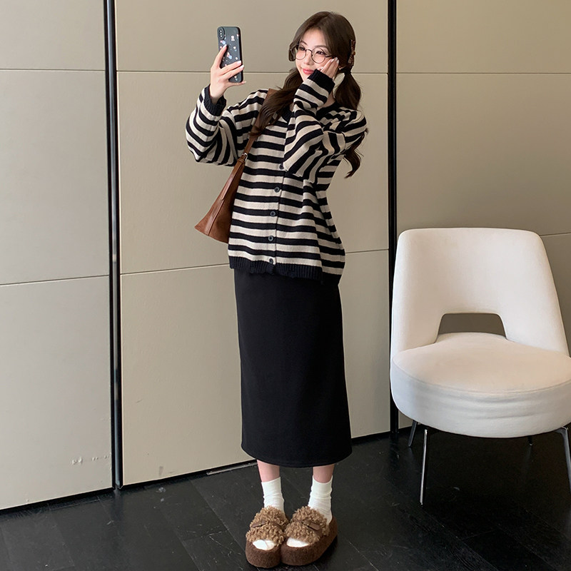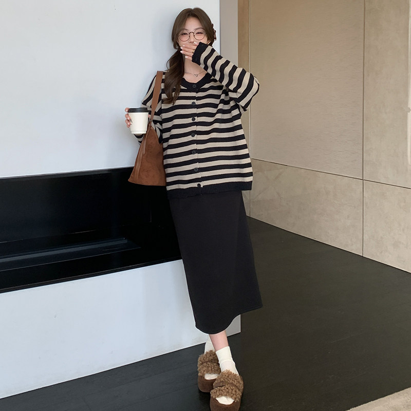 婧麒孕妇装冬装新款条纹毛衣外套孕期洋气高级上衣裙子孕妇套装女