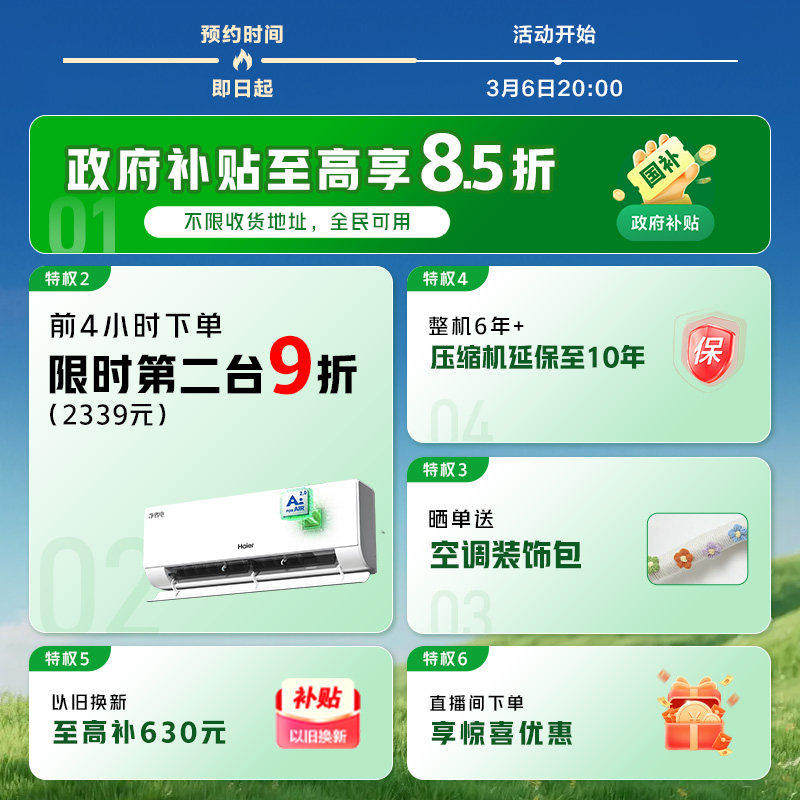 【纯铜管】海尔空调1.5匹1匹家用一级变频冷暖挂机净省电E1旗舰店