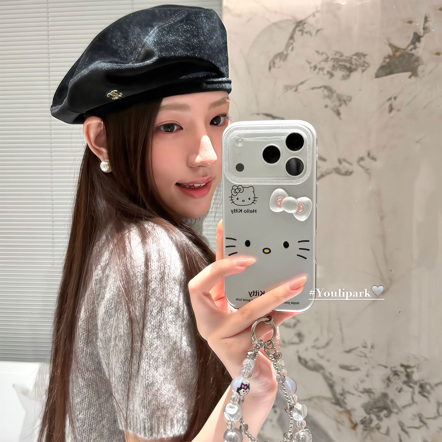 由里公园ins韩系可爱电镀立体蝴蝶结猫咪17适用17pro苹果17ProMax手机壳iPhone16全包14新款16Promax保护套女