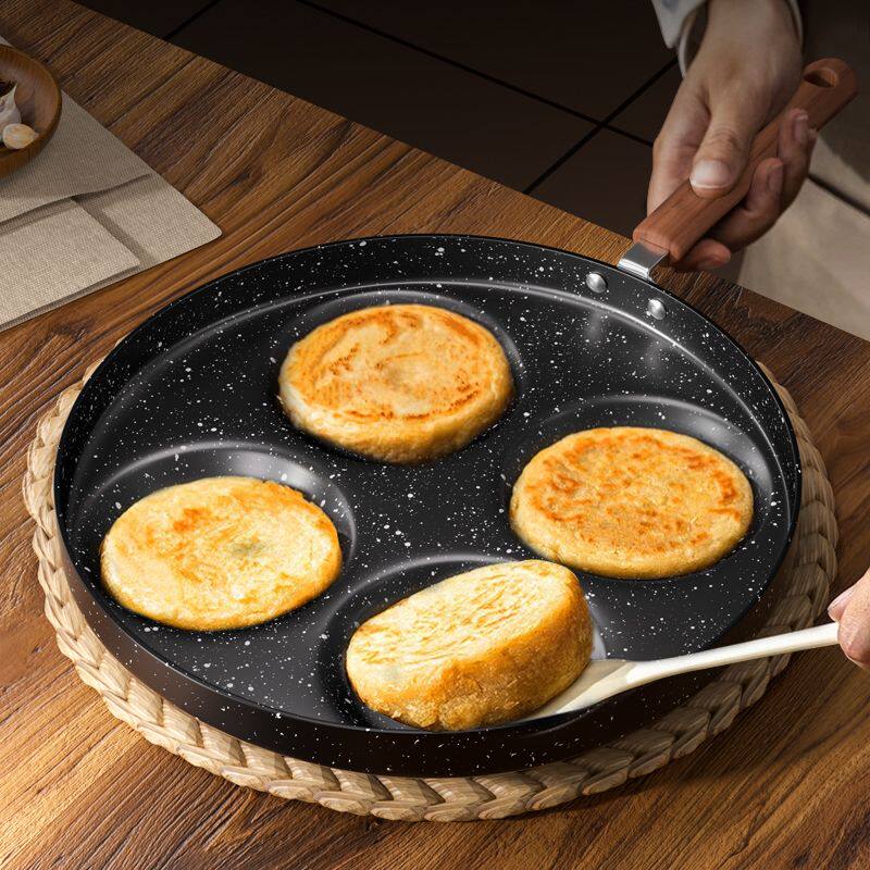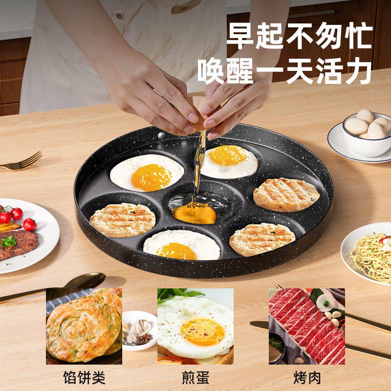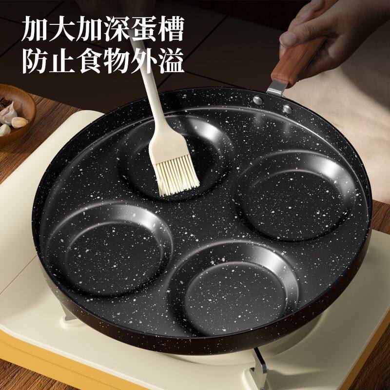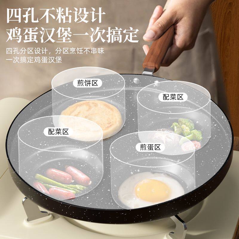 四孔煎蛋锅麦饭石涂层不粘锅家用厨房鸡蛋汉堡锅四孔早餐锅小煎锅