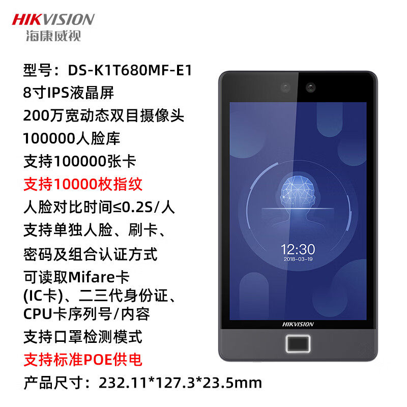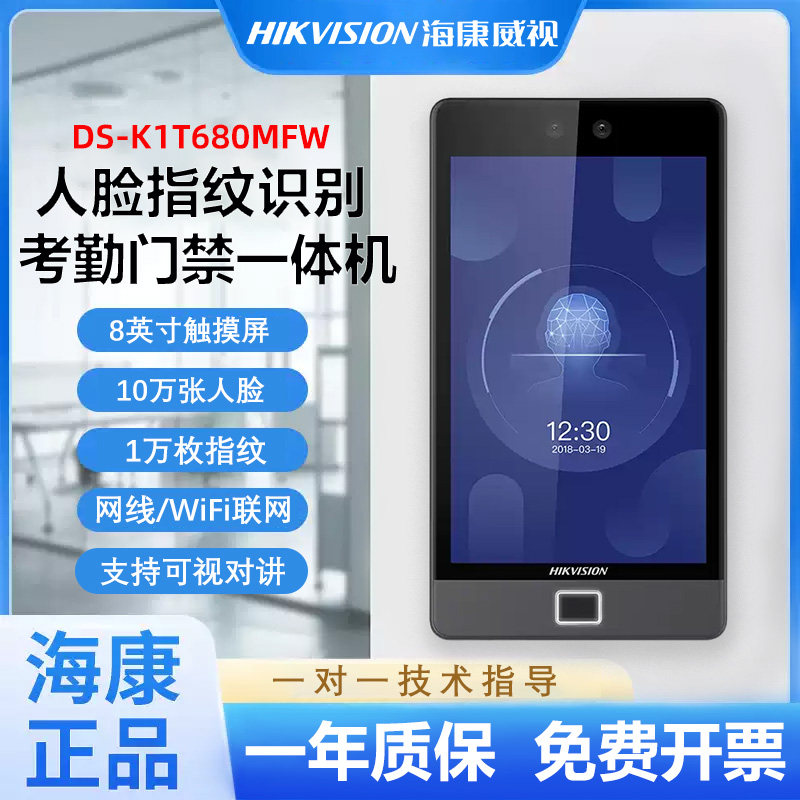 海康威视人脸识别门禁系统一体机DS-K1T680M楼宇对讲门口机8英寸