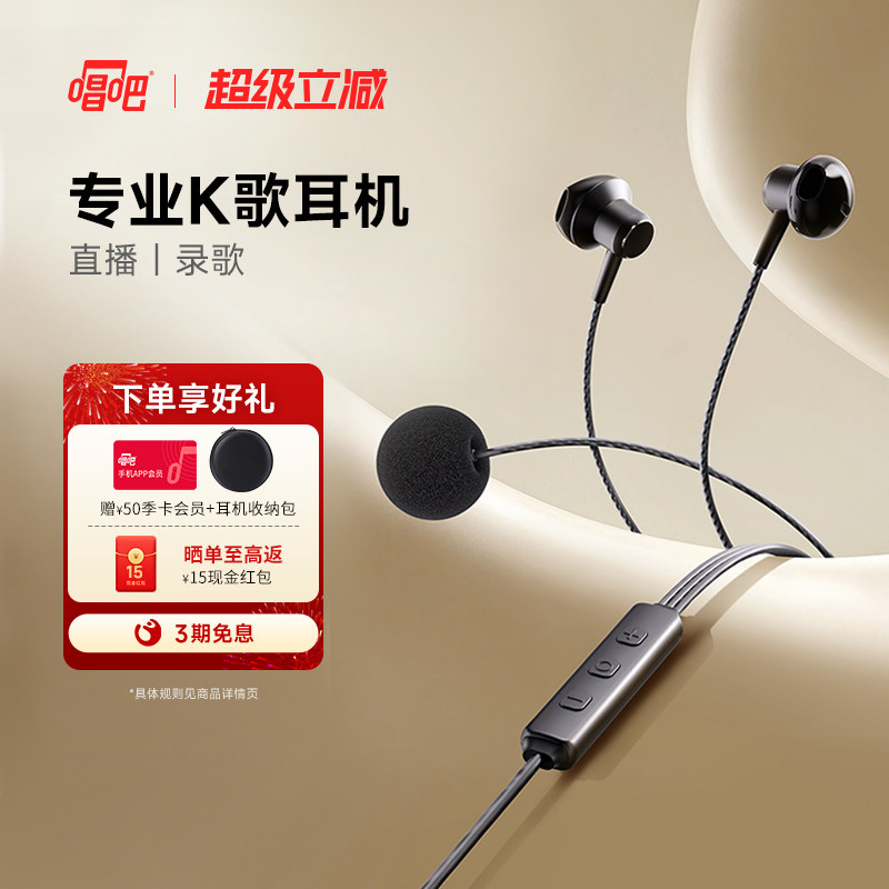 唱吧小巨蛋K歌耳机有线直播声卡自带耳返专业K歌直播录歌麦克风