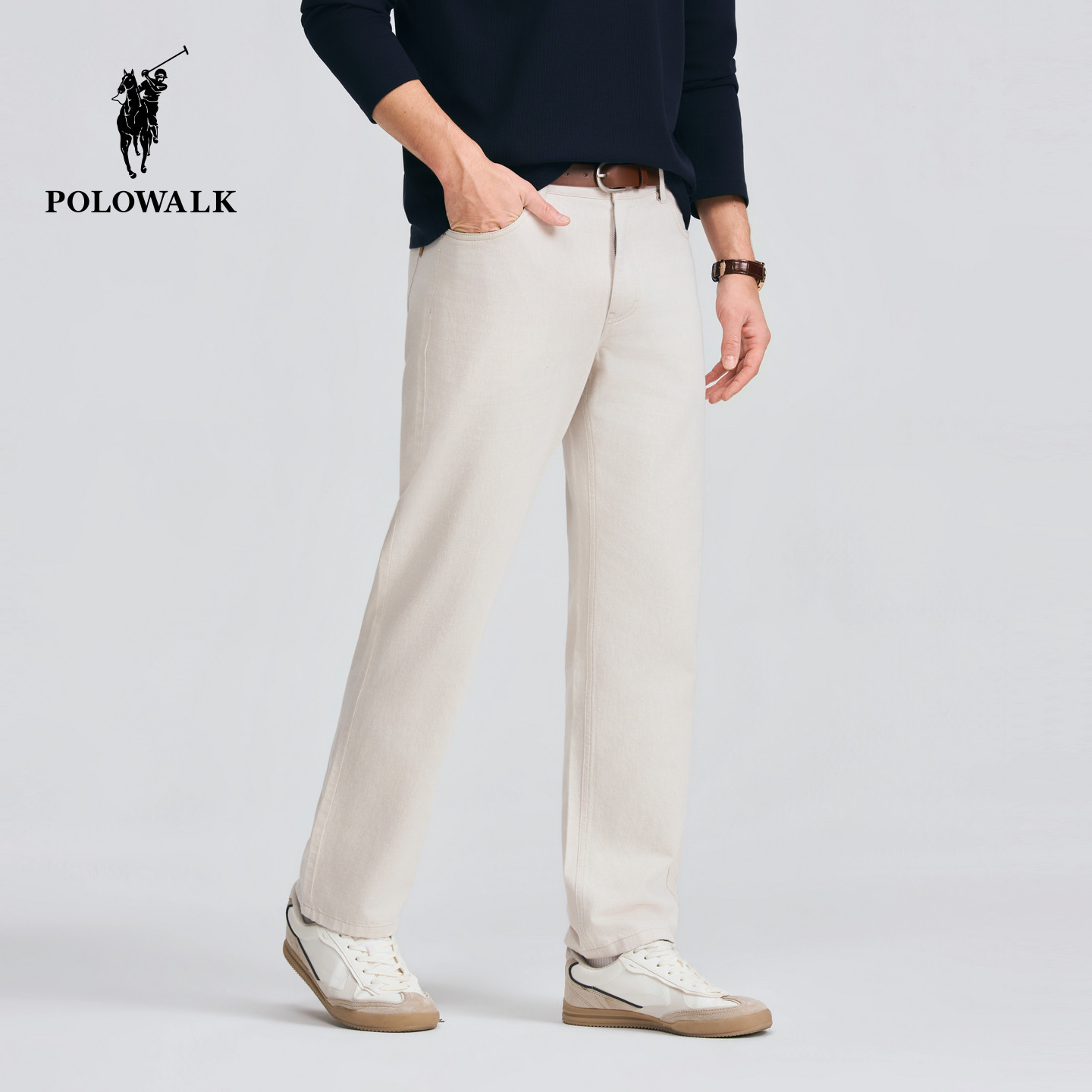 POLOWALK男式休闲裤2026春夏裤新品棉麻混纺经典直筒显瘦休闲长裤
