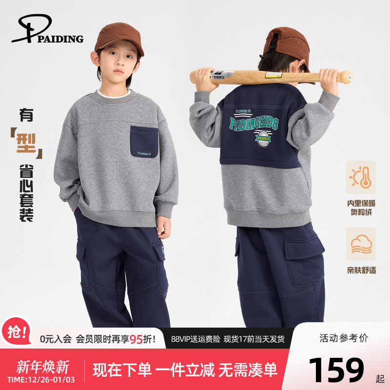 派町童装男童套装2025新款儿童加厚加绒运动套装中大童洋气秋冬款