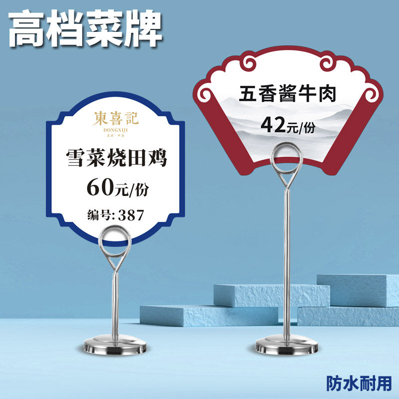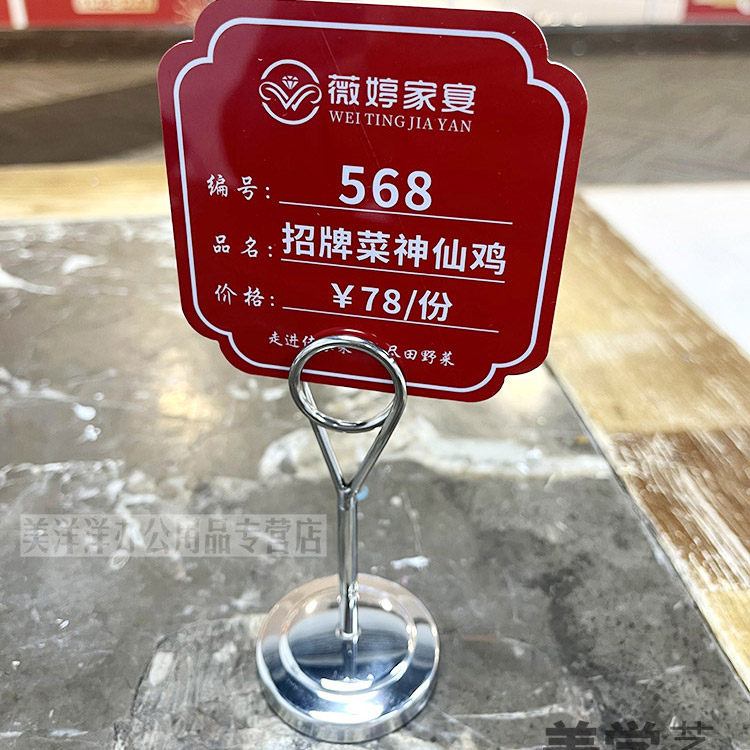 菜牌不锈钢席位卡架酒店餐厅自助餐价格牌标签展示婚礼架宴会桌牌号码饭店插卡夹座中西餐饮铺海鲜明档价钱牌