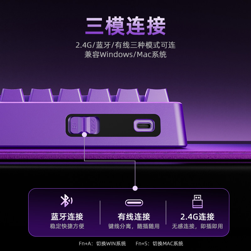 全键热插拔 三模链接 支持驱动 大容量电池