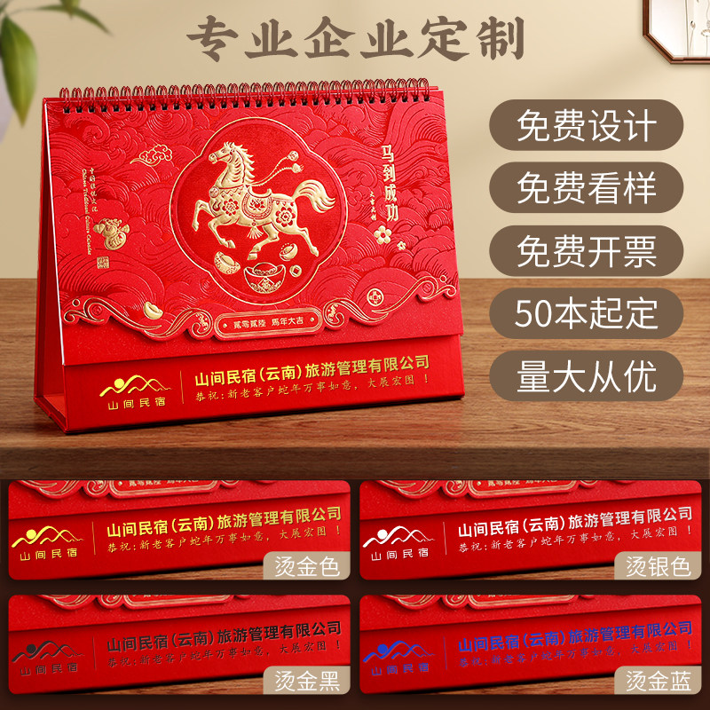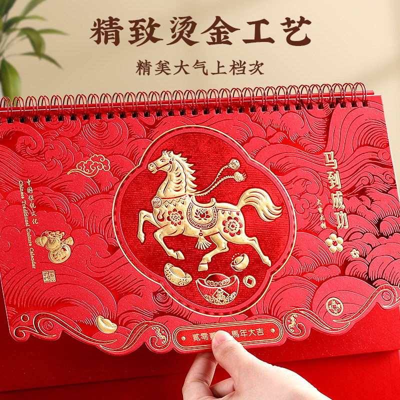 马年日历定制新款2026年台历中国风新年大号红色商务办公桌面摆件记事本定做公司年会礼品送客户工作打卡日历