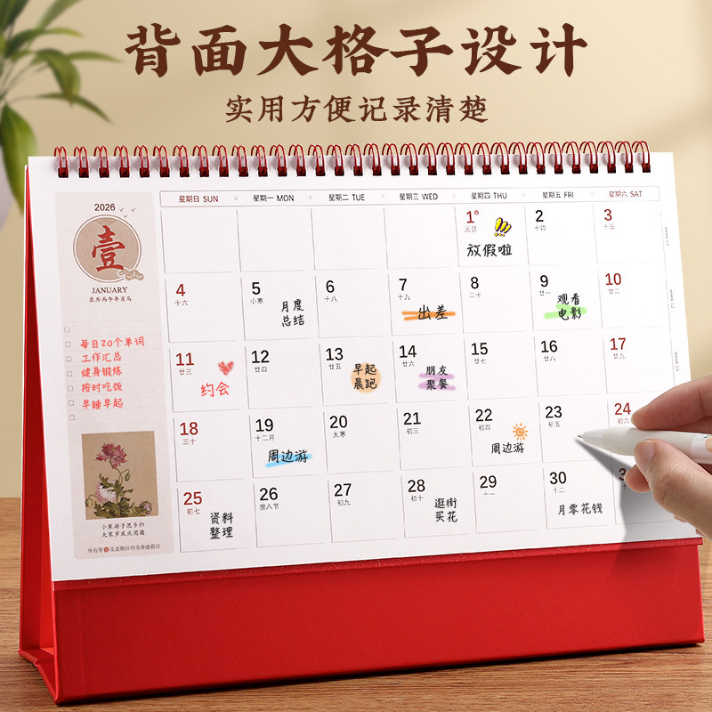 台历2026年新款日历定制logo创意简约小清新韩式办公年历个性中国风桌面摆件商务工作记事计划本订制广告月历