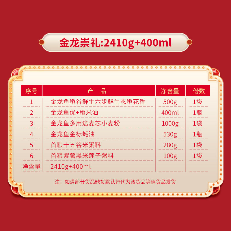 金龙鱼大礼包金龙崇礼2810g粮油米面组合装五谷杂粮春节年货福利