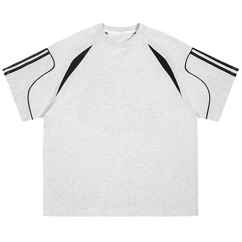 美式小众高级感拼接纯色短袖t恤男夏季简约百搭宽松纯棉条纹上衣