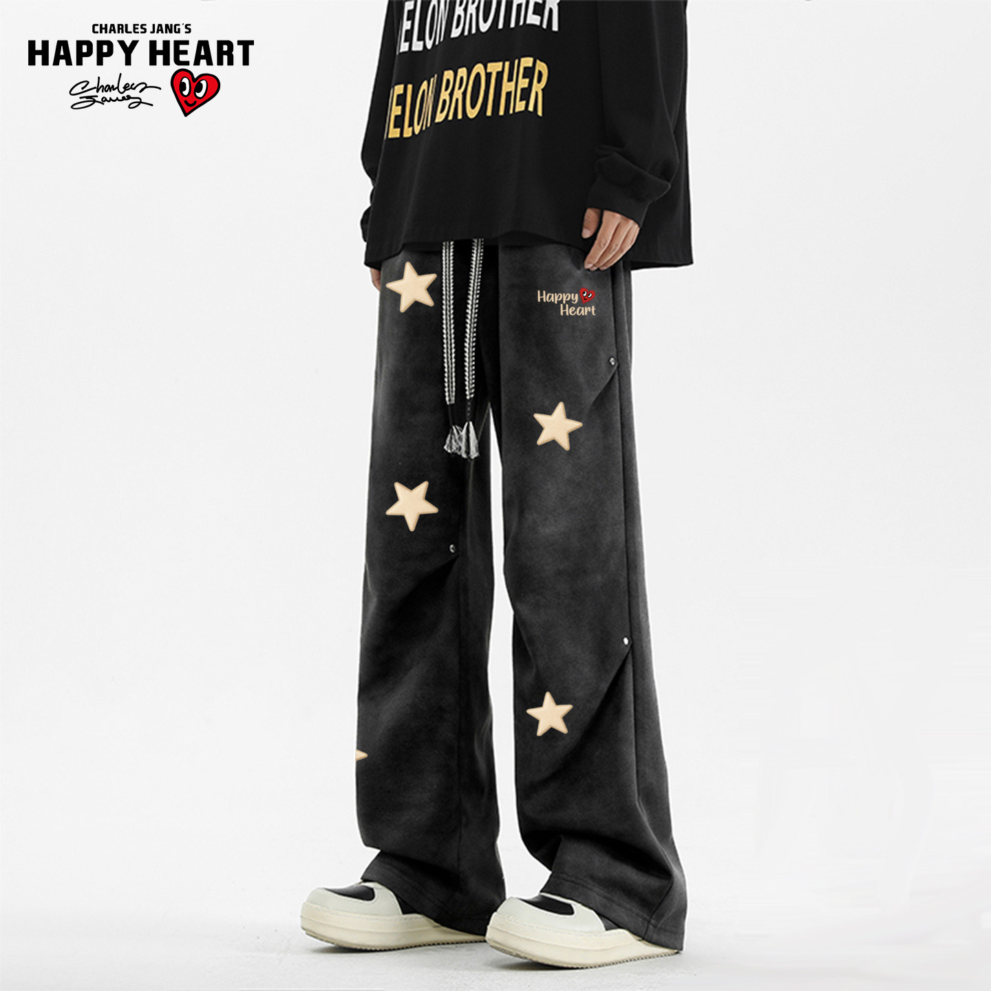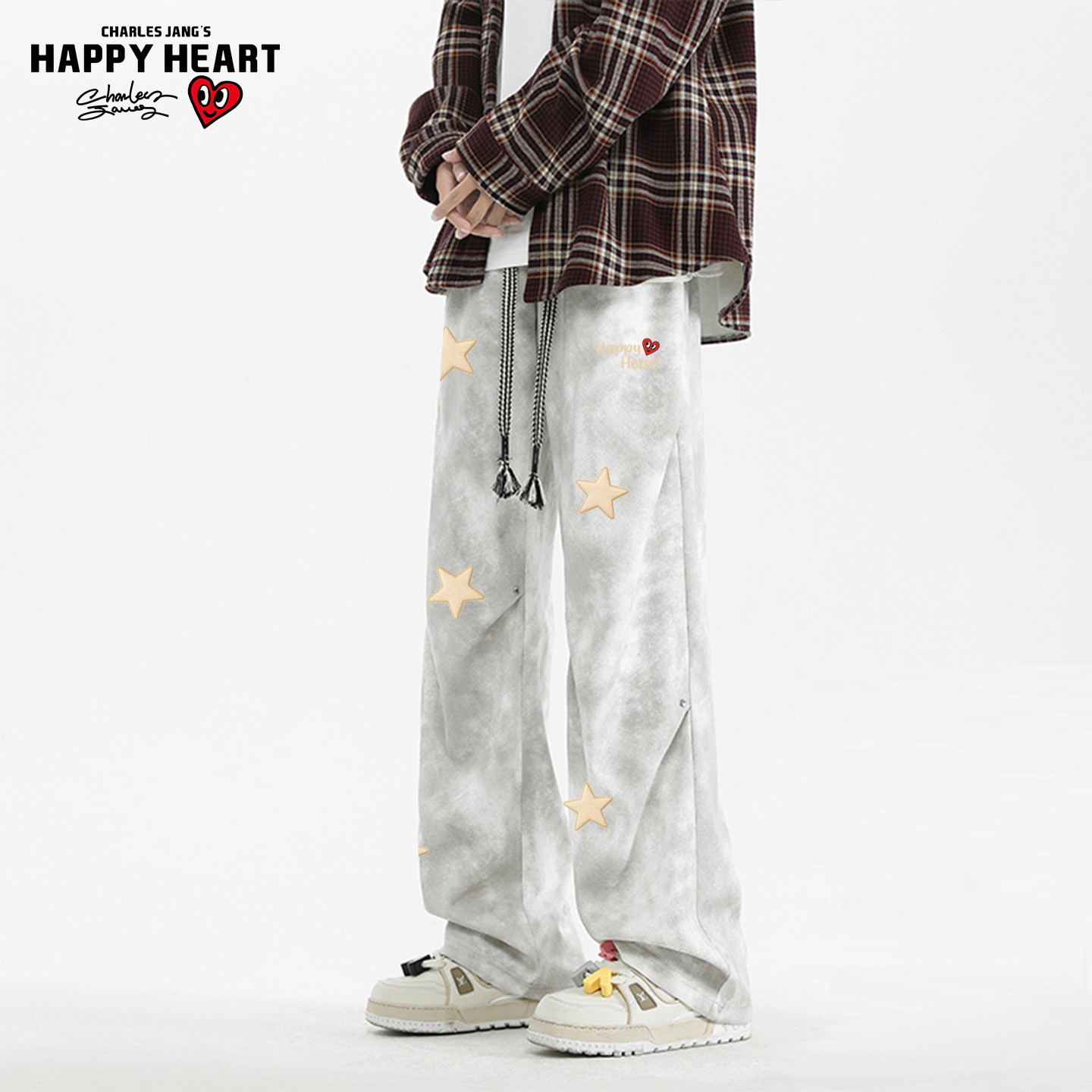 查尔斯桃心星星印花美式扎染休闲长裤男女春秋季宽松直筒运动卫裤