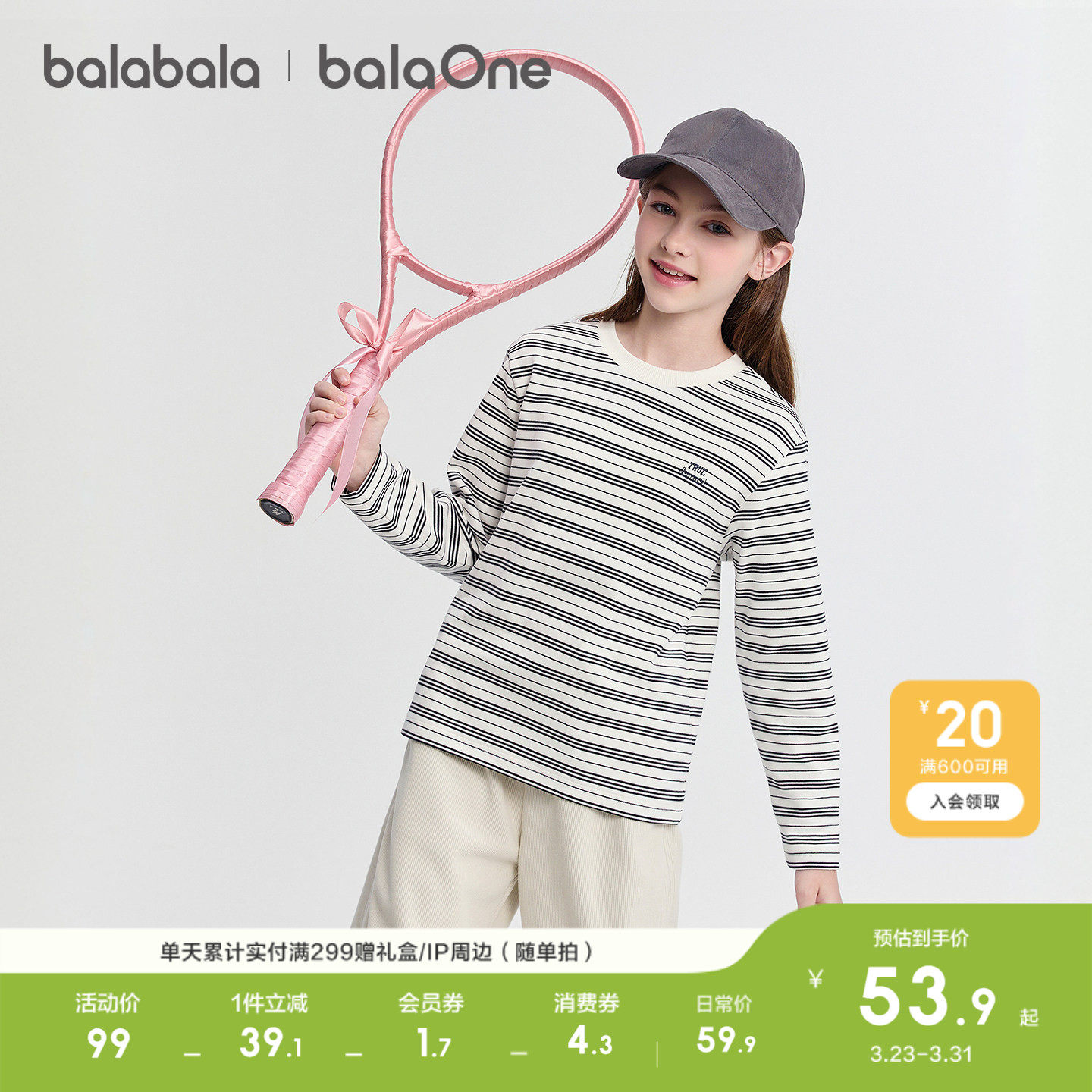 巴拉巴拉童装儿童长袖t恤男童女童衣服新款秋冬装条纹打底衫上衣