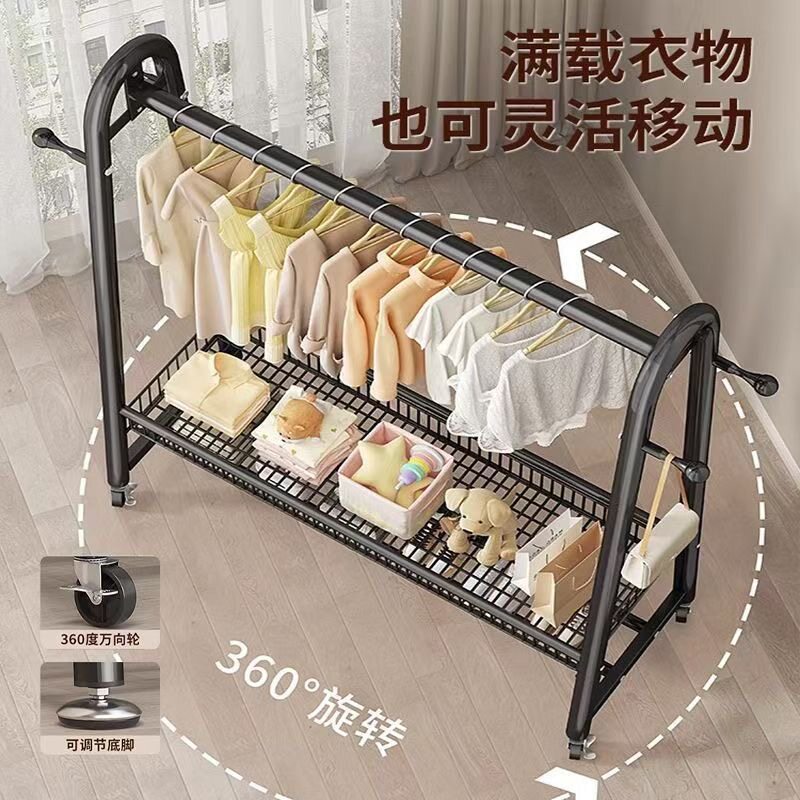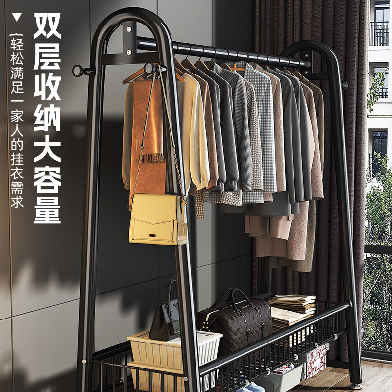 晾衣架落地家用可移动卧室凉衣架阳台挂衣服架子室内简易杆衣帽架
