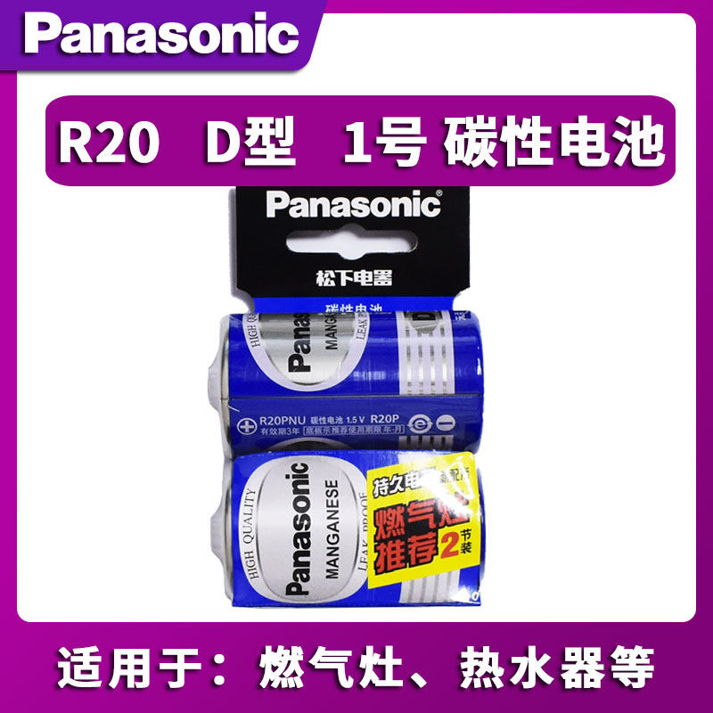 松下1号电池D型一号大号碳性R20热水器煤气燃气灶1.5V手电筒挂钟座钟收录机液化气灶2粒低电流保护型电池