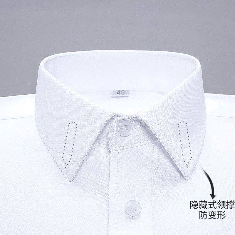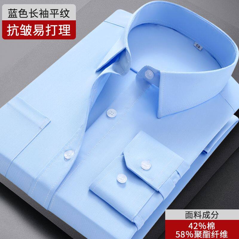 蓝色衬衫男士长袖斜纹免烫衬衫职业面试公务员考试工装上班工作服