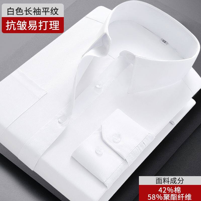 【免烫抗皱】金利来秋冬磨毛莫代尔白衬衫男休闲白色结婚长袖衬衣