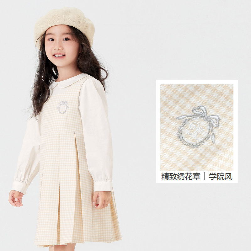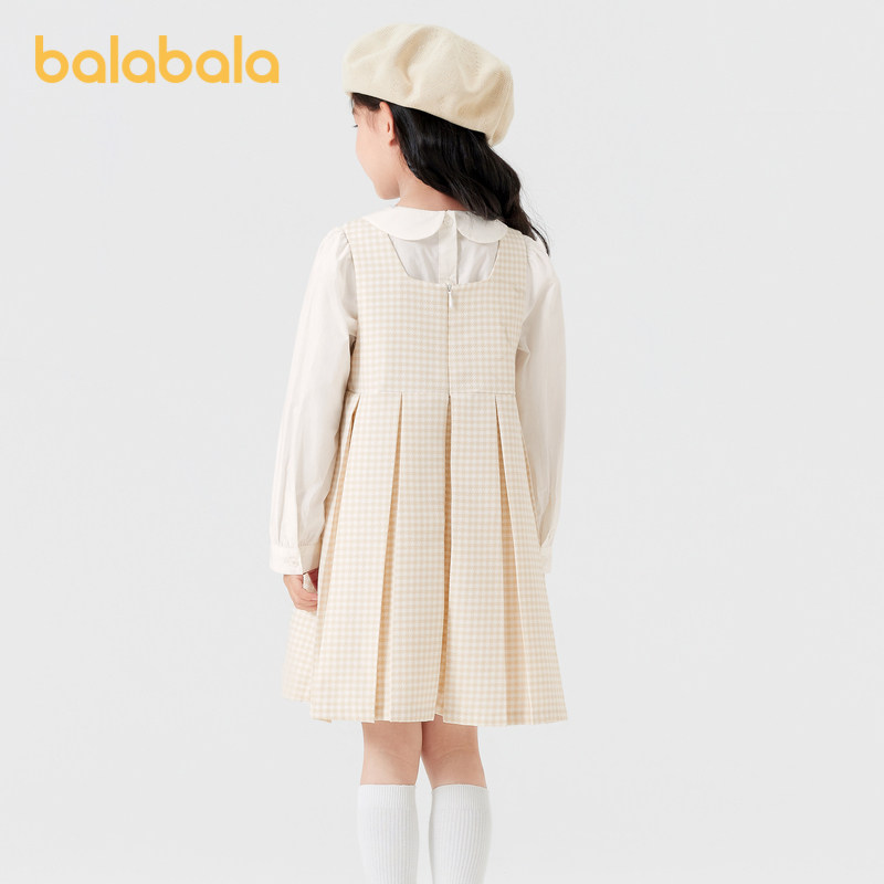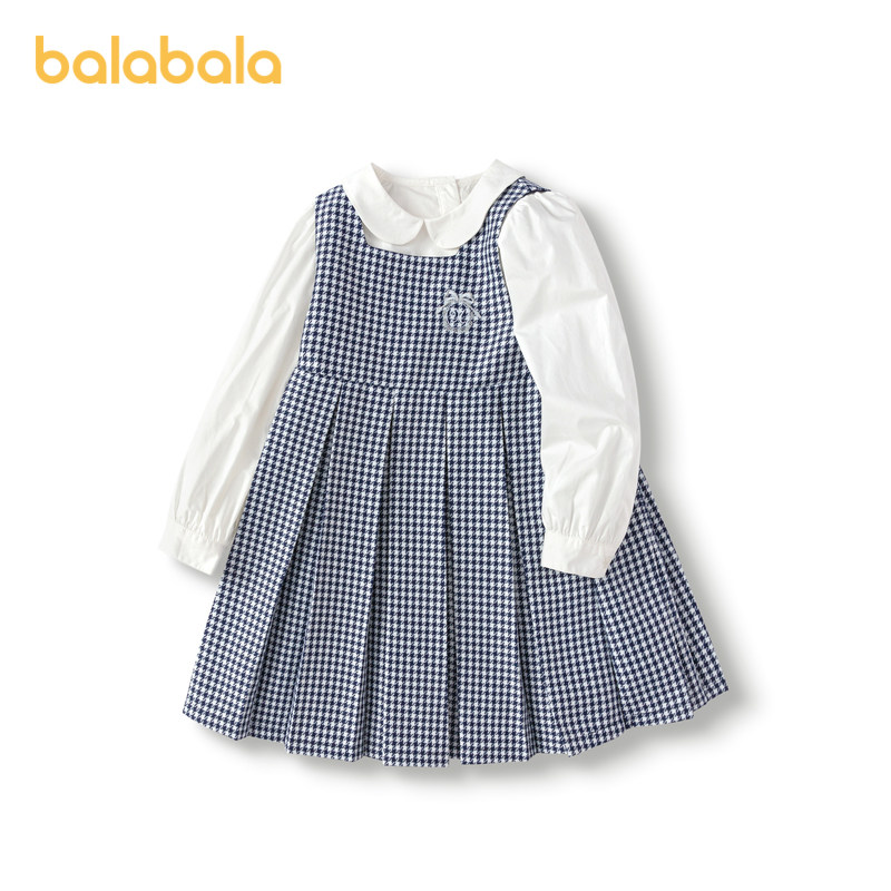 巴拉巴拉童装儿童连衣裙子套装女童秋装衬衣百褶两件套洋气千鸟格