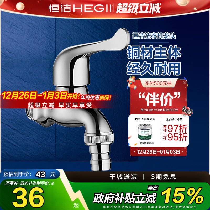 HEGII恒洁洗衣机龙头卫生间厨房阳台全铜单冷水龙头4/6分接口140B