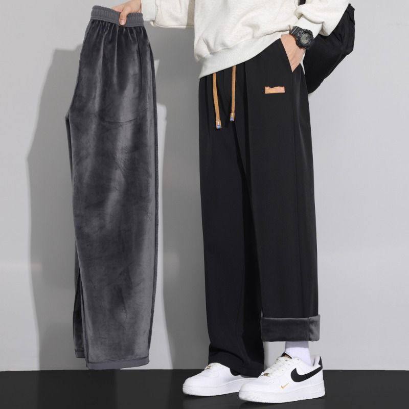 直筒裤子男士春秋季2025新款秋冬加绒卫裤宽松阔腿运动休闲长裤子