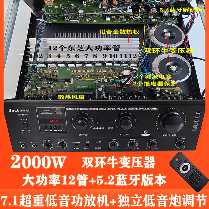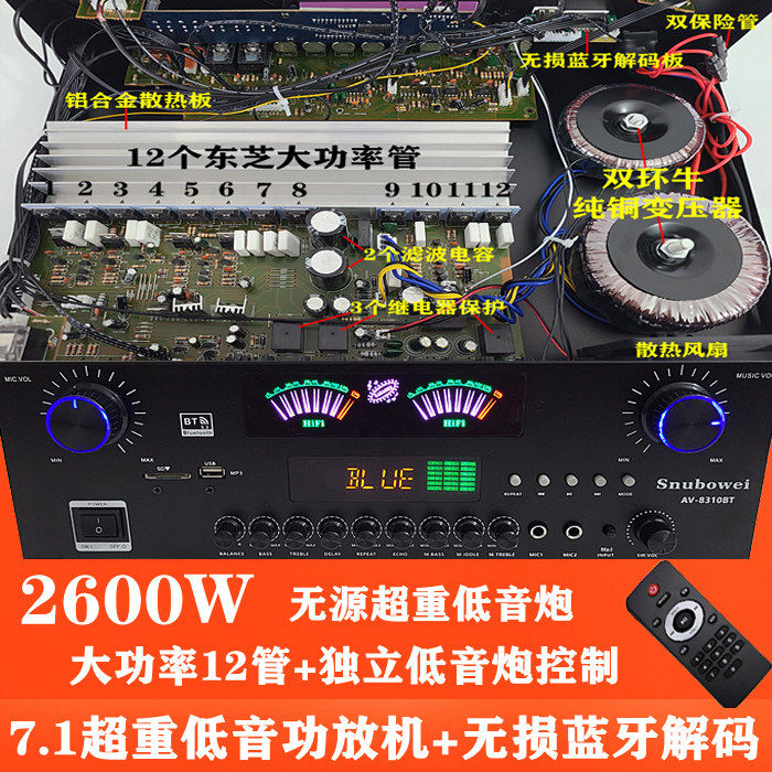 5.1声道大功率220V蓝牙功放户外广场跳舞HiFi无损低音炮功放机