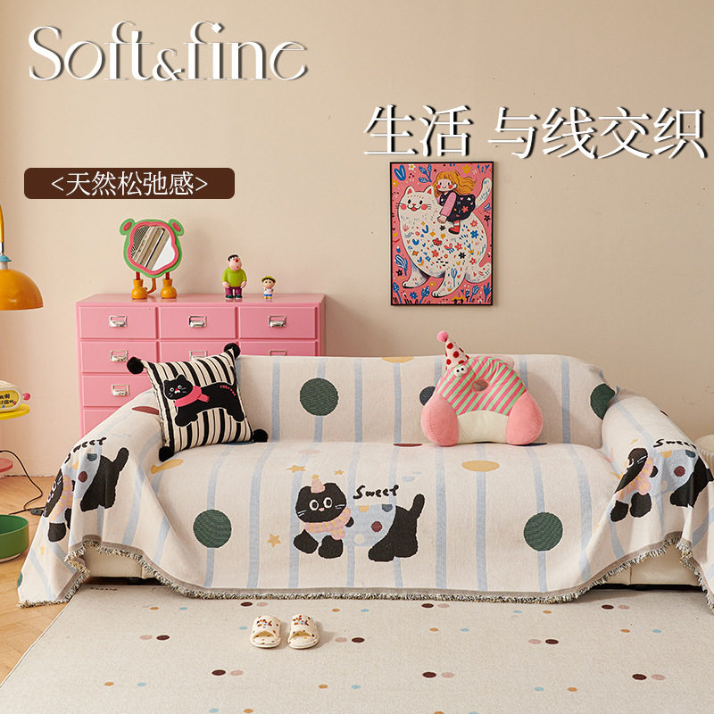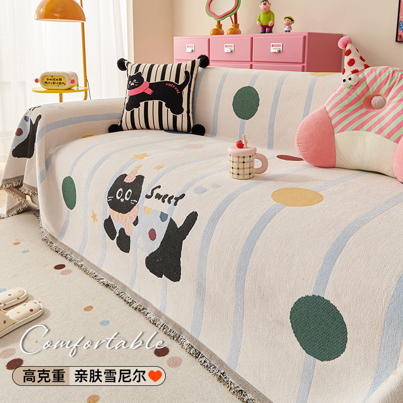 沙发巾现代简约沙发套罩万能全包四季通用盖布毯防滑客厅氛围奶油