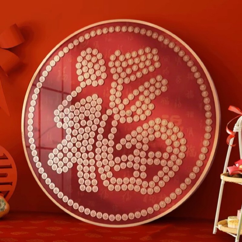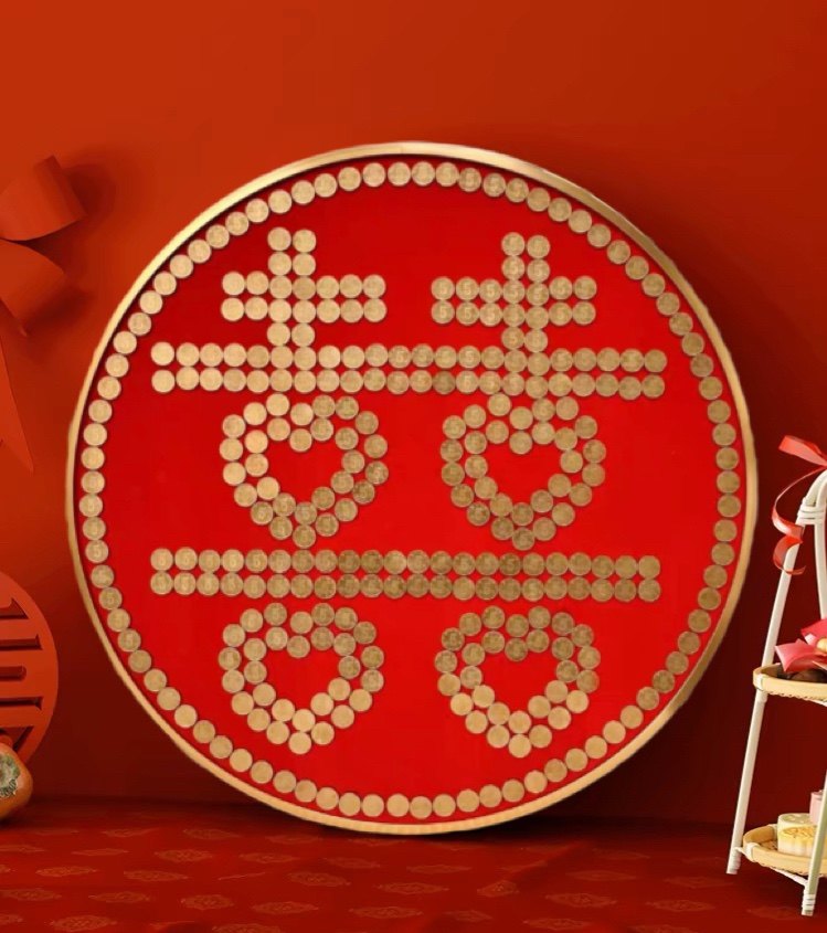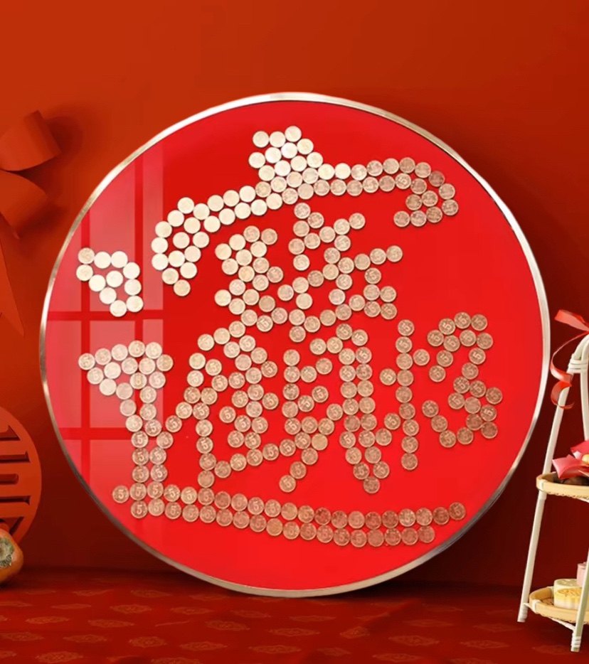 喜字硬币相框百喜图手工diy5毛钱礼物送新人新娘五角钱喜字贴模版
