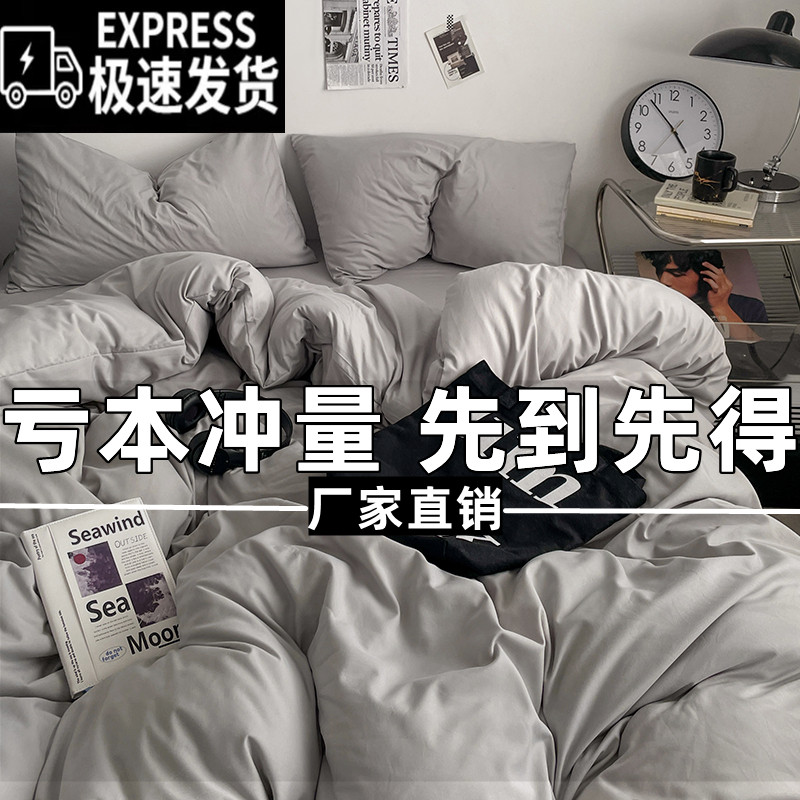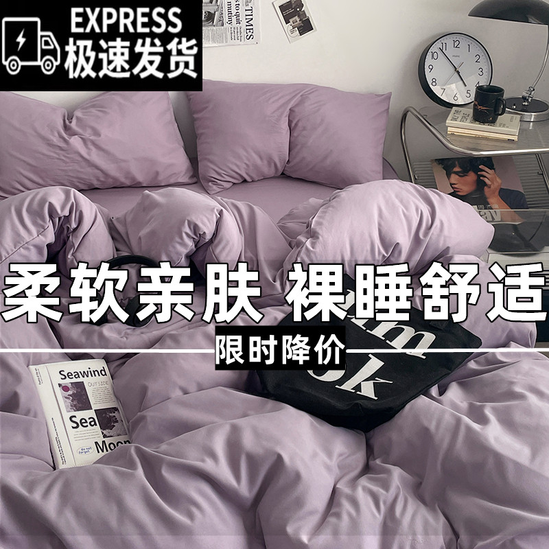 ins纯色全棉双拼四件套被套床单双人床品纯棉床笠学生宿舍三件套4