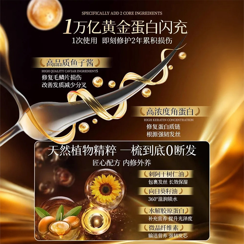 闪钻鱼子酱发膜蛋白还原酸柔顺护发素修护干枯毛躁护发顺滑旗舰店