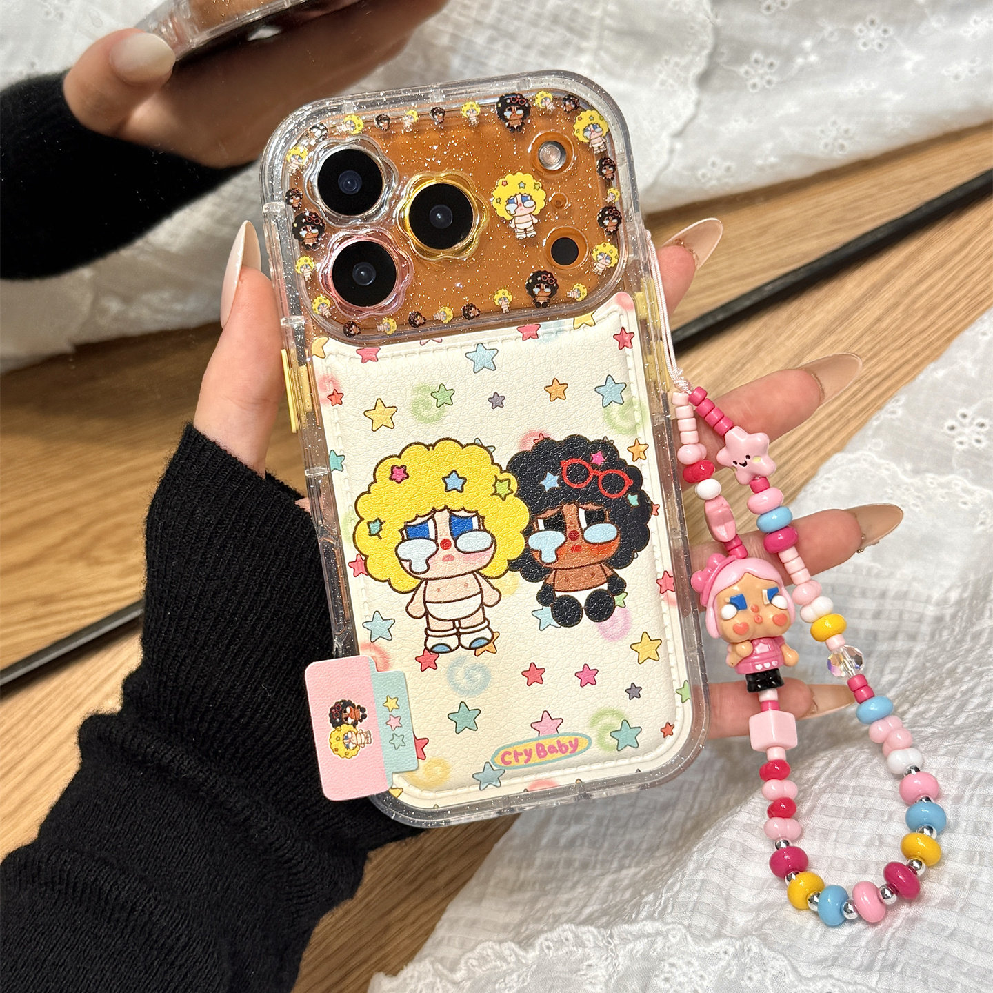 韩系彩色星星爆炸头哭泣女孩链条适用于iphone17promax苹果14手机壳15新款16pro女13可爱17pm全包硅胶防摔套