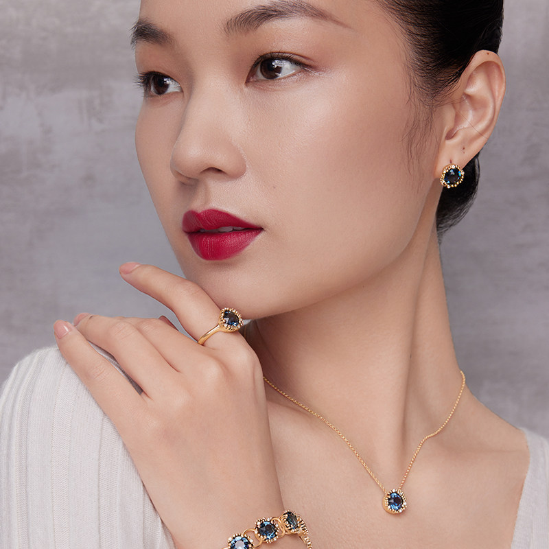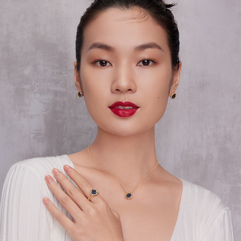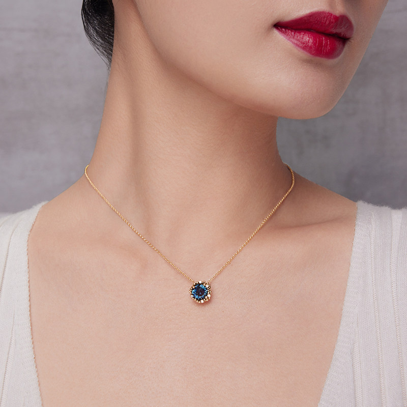 Fellala/翡拉拉「灵石」复古水晶优雅简约宝蓝色项链