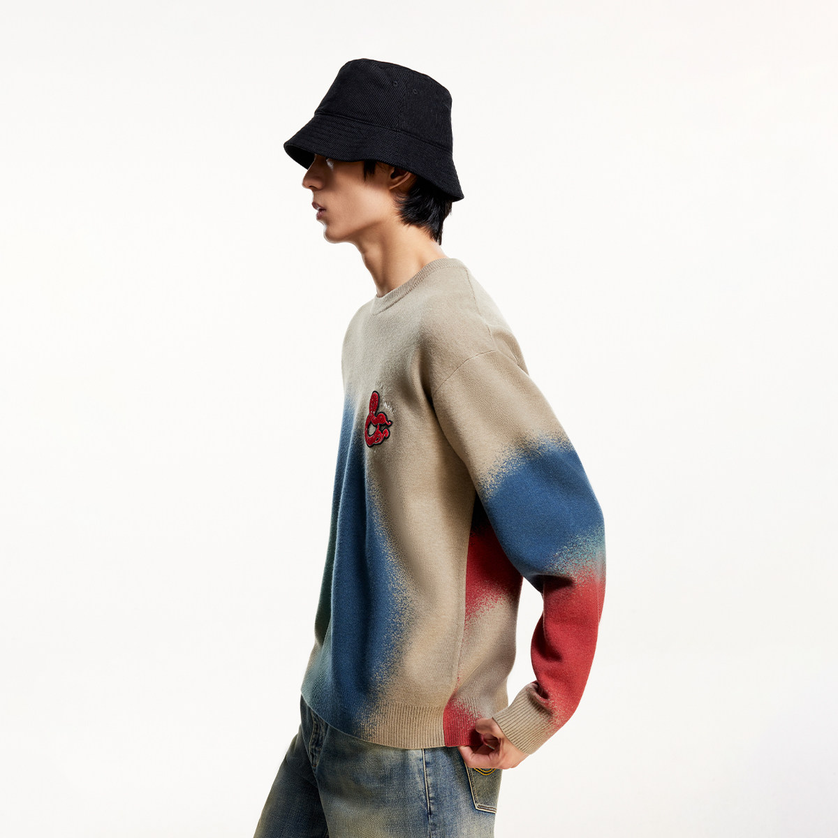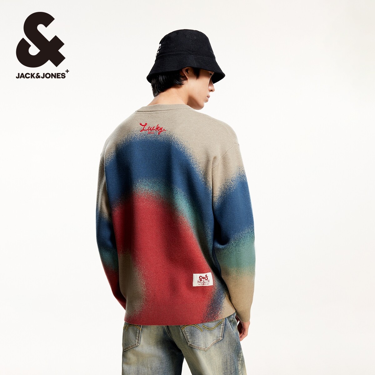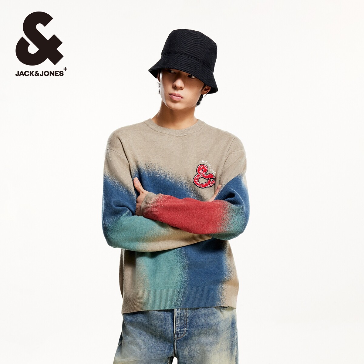 杰克琼斯男装春季新款蛇年新年款衣身渐变潮流宽松圆领毛衣针织衫