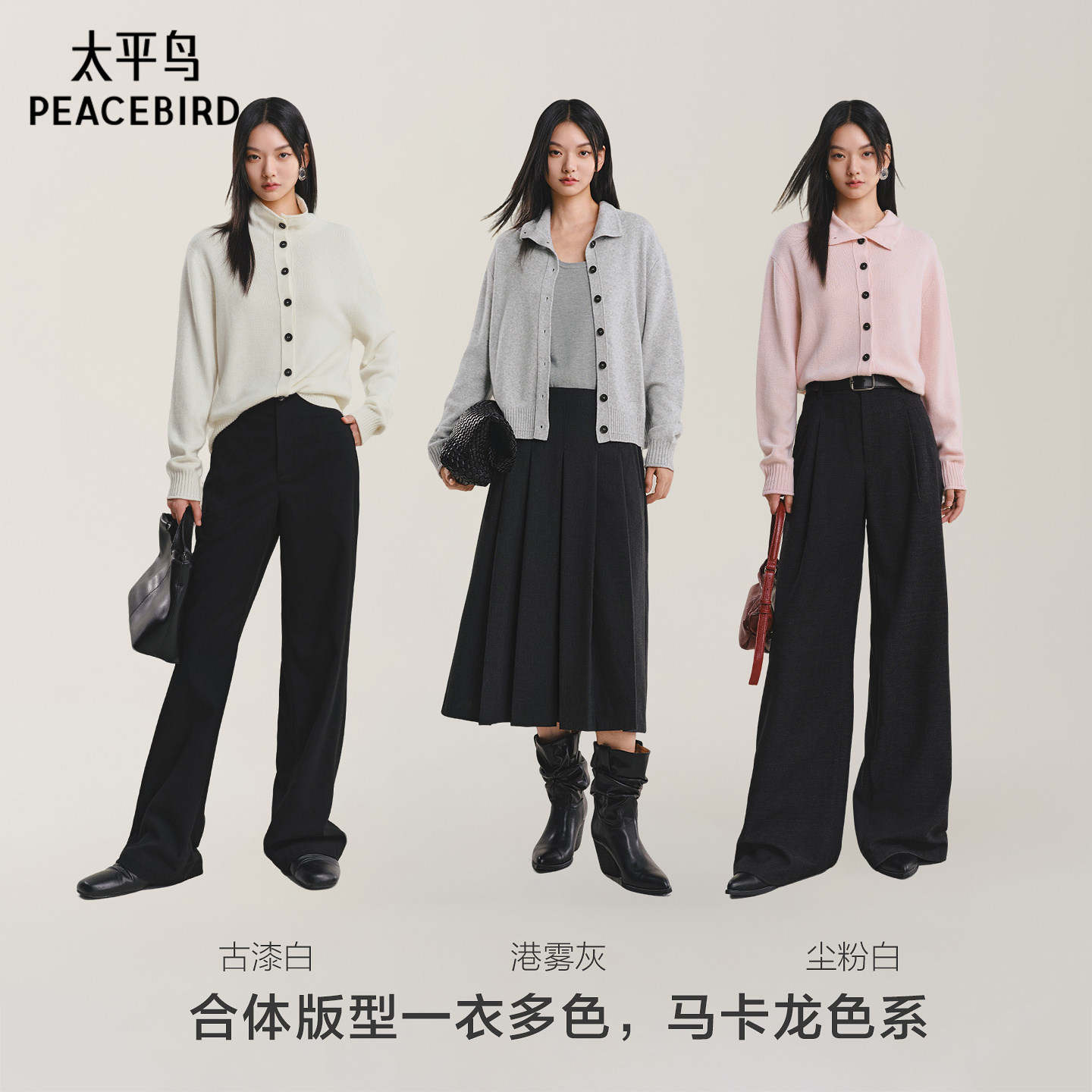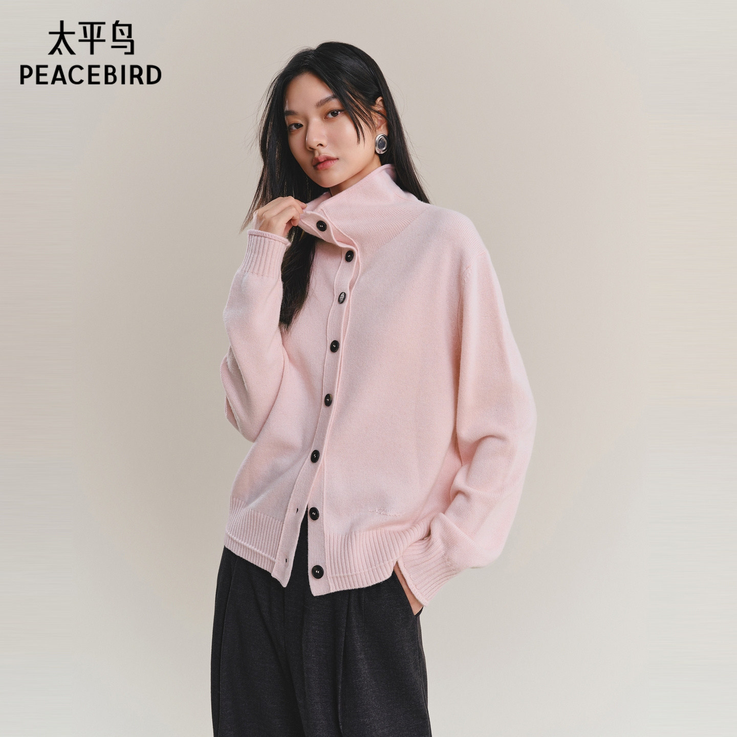 【商场同款】太平鸟新款羊绒混纺沙漏领可调节针织开衫A1EDF4340